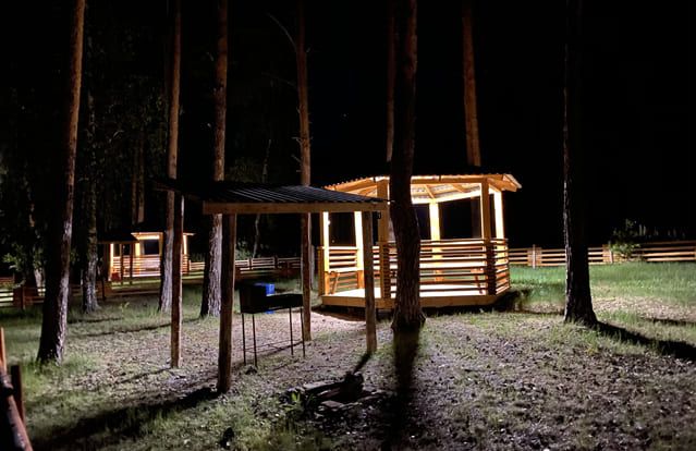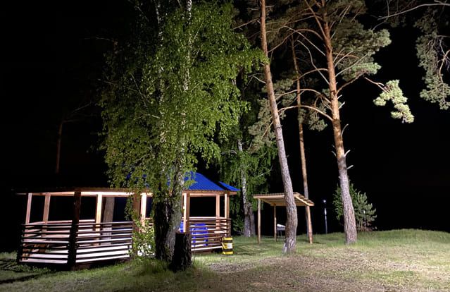 До 10 человек. Вдоль береговой линии в лесной зоне Паршинского рыбоводного участка. Имеется электричество и освещение, мангал.