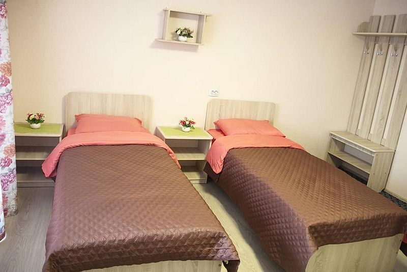 Две 1-спальные кровати, стол, Ч, СВЧ, Х, с/у на этаже.