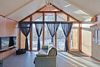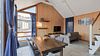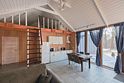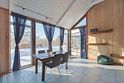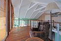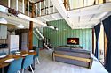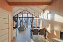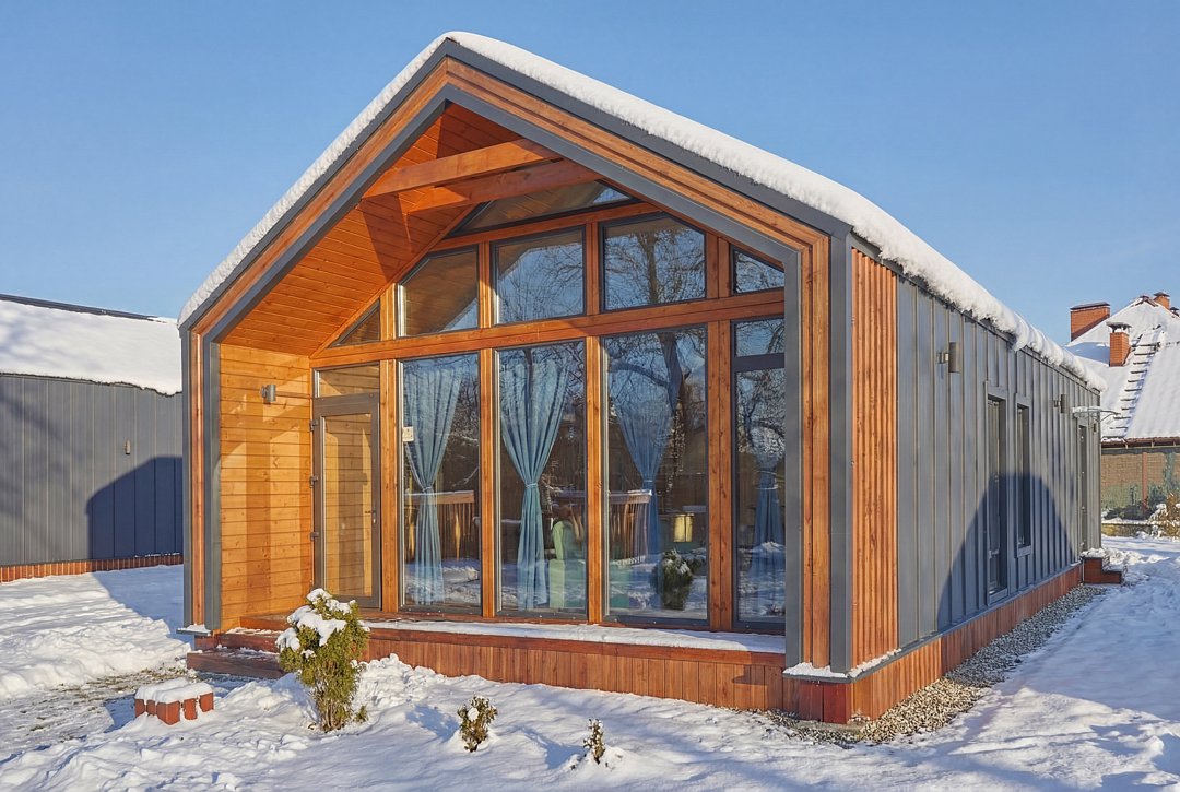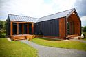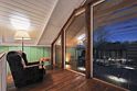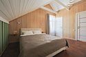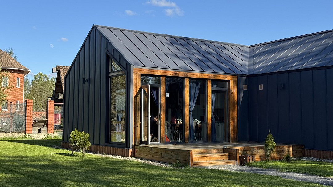 Современный одноэтажный дом с мансардой, с отделкой из натурального дерева, большими окнами и обилием естественного света: