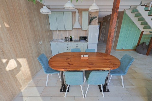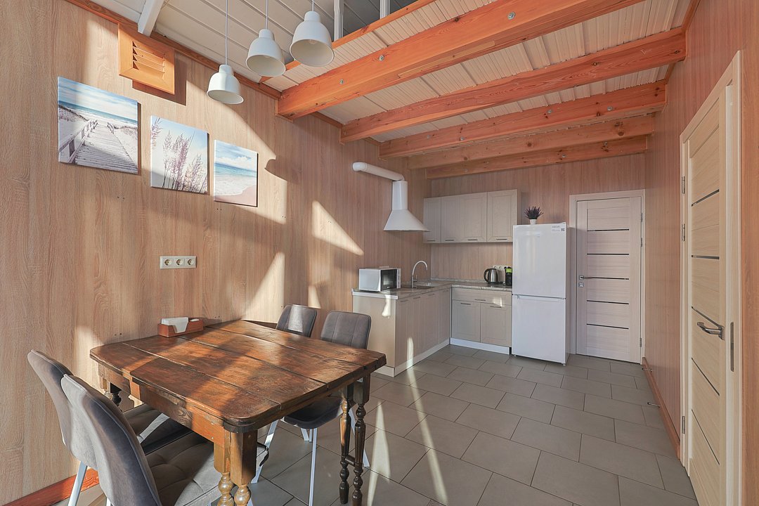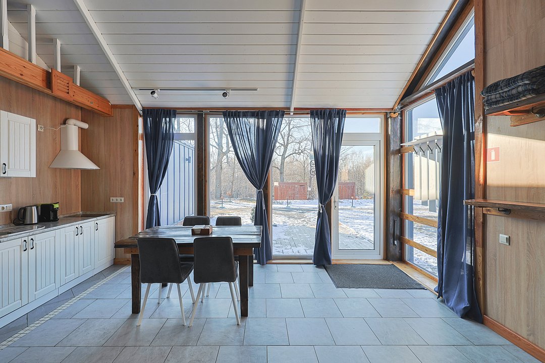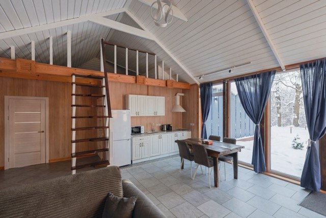 Семейный отдыхДостоинстваИзображения на сайте – это одно, но в реальности место действительно превосходит ожидания. Все ухожено и поддерживается в чистоте, как на территории, так и внутри домиков. В домах все находится в отличном состоянии, обстановка современная, и радует наличие теплых полов повсюду. Очень приятно прогуливаться, особенно учитывая наличие дополнительных удобств, таких как Яндекс Станция и украшенная елочка. В общем, создается уютная и теплая атмосфера. Отмечу, что питание здесь просто великолепно – вкусно и в больших порциях!
