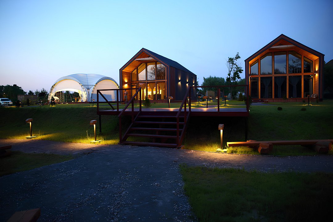 Комплекс предлагает своим гостям размещение в экологически чистом районе в одно- и двухэтажных коттеджах из натуральных материалов, вместимостью до 6 человек. Территория комплекса позволяет своим гостям уединиться в выбранном доме, не пересекаясь с другими постояльцами. Вся прилегающая к домам территория облагорожена, в любое время года во время пеших прогулок гости могут наслаждаться красотами природы и найти уединение с природой.