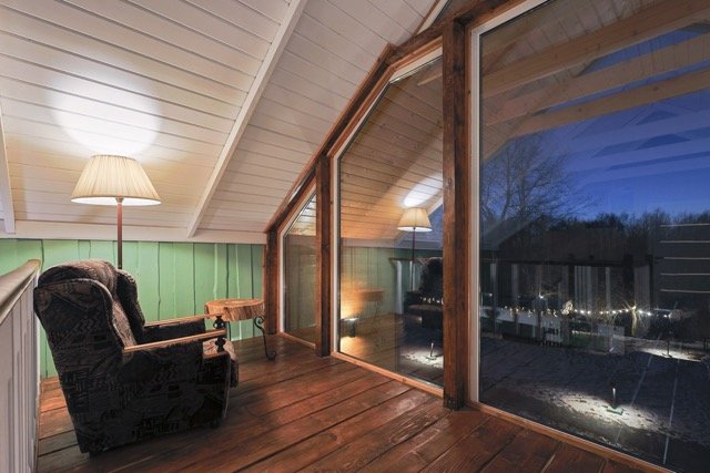 — уютный уголок с креслом с видом на реку;