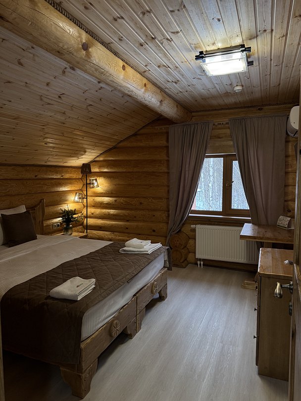 Стандартный улучшенный номер с кондиционером с двумя односпальными (90*200 см) или большой двуспальной кроватью (180*200 см) с ортопедическим матрасом. Номер оборудован багажной тумбой, зеркалом, креслом, письменным столом, стулом, шкафом для одежды с вешалками, гладильной доской, косметическим зеркалом, утюгом, феном, мини-холодильником, телевизором с плоским экраном и кабельным ТВ. В распоряжении гостей всегда есть минеральная вода, мини-бар, чайный набор (чай/кофе), набор посуды, электрический чайник. Ванная комната с душевой кабиной укомплектована косметическими средствами, банными полотенцами, тапочками, халатами. На всей территории отеля действует бесплатный WI-FI.