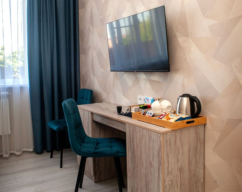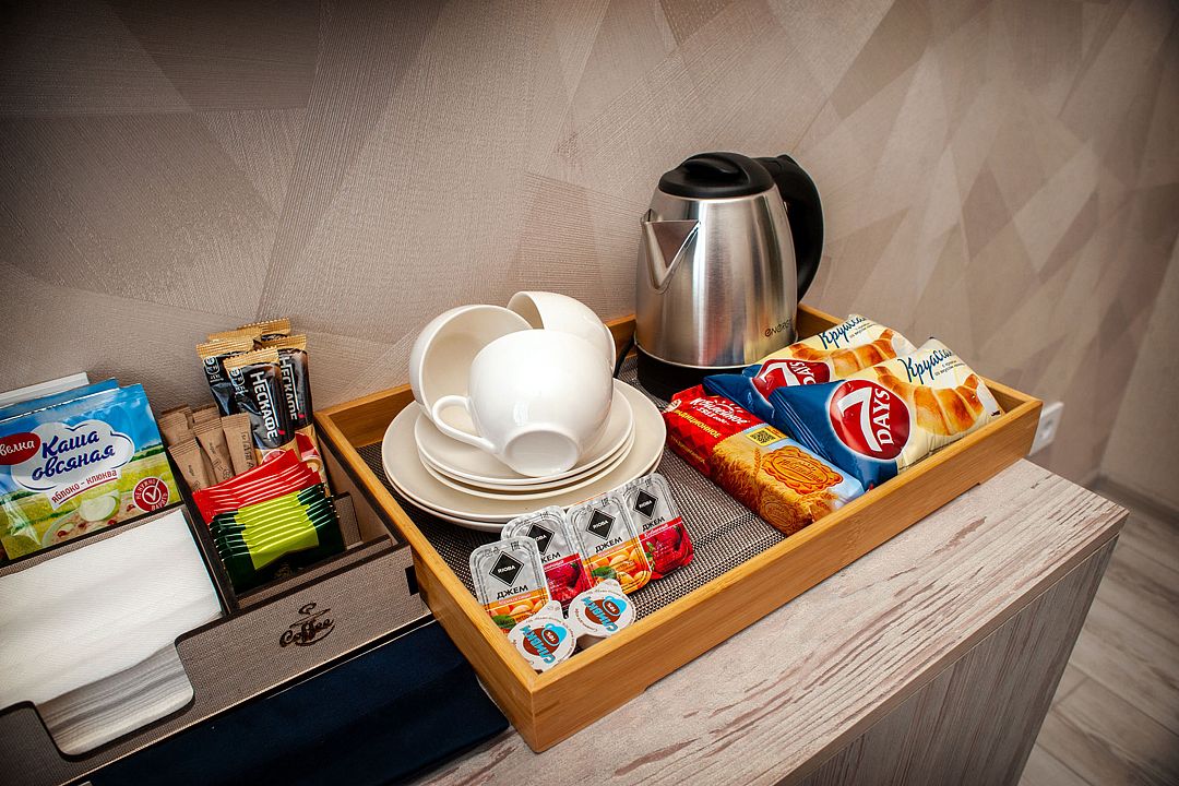 Все номера оснащены удобными кроватями с ортопедическими матрасами, сплит-системами, современными плоскими телевизорами, холодильниками и просторными шкафами для одежды. В каждом номере есть индивидуальная ванная комната с теплым полом, душем, туалетом, раковиной, феном, а также набором полотенец и гигиеническими принадлежностями.