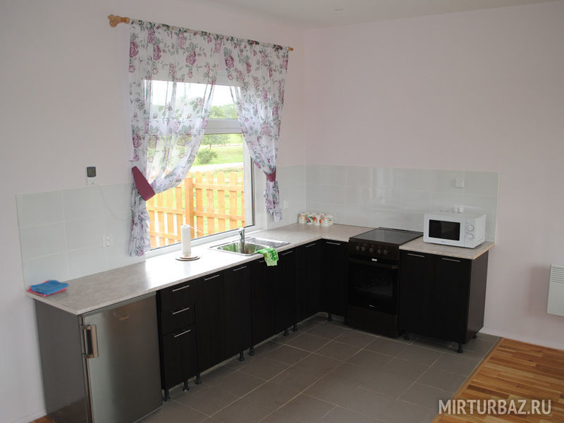 ДостоинстваБольшая территория, много зелени. Дома расположены далеко друг от друга. Есть ощущение уединения. На территории можно взять велосипеды, настольный теннис, шахматы, домино, бадминтон, мяч, самокаты. В доме есть всё необходимое: холодильник, плита, микроволновка, посуда, полотенца. Санузел в доме. Во дворе мангал и садовая деревянная мебель. Парковочное место прямо возле дома. Такой отдых подойдёт для тех, кто любит природе и хочет уединиться.