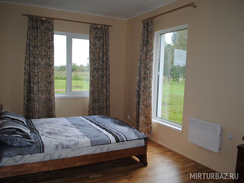 Большой, просторный коттедж с высокими потолками и огромными окнами прекрасно вместит семью или компанию из 4-6 человек.