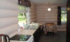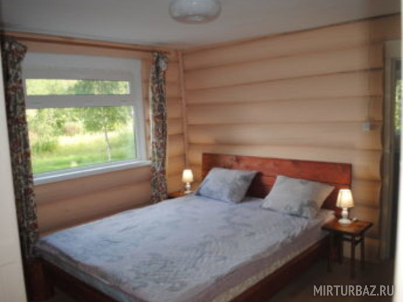 В доме есть 1 спальня, гостиная с кухней. Коттедж в традиционно русском стиле расчитан на семейную пару или семью с ребенком. В доме есть холодильник, электроплита и вся необходимая посуда. Горячая и холодная вода на кухне и в ванной. Площадь коттеджа составляет 48 кв. метров.