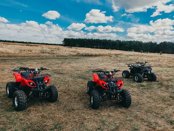 В данную услугу входит прокат от 1 до 3 квадроциклов, полный экскурс и сопровождение. Клиент может выбрать местность, где желает покататься, это: лес, поле, берег реки, равнинная поляна, сельские улицы.