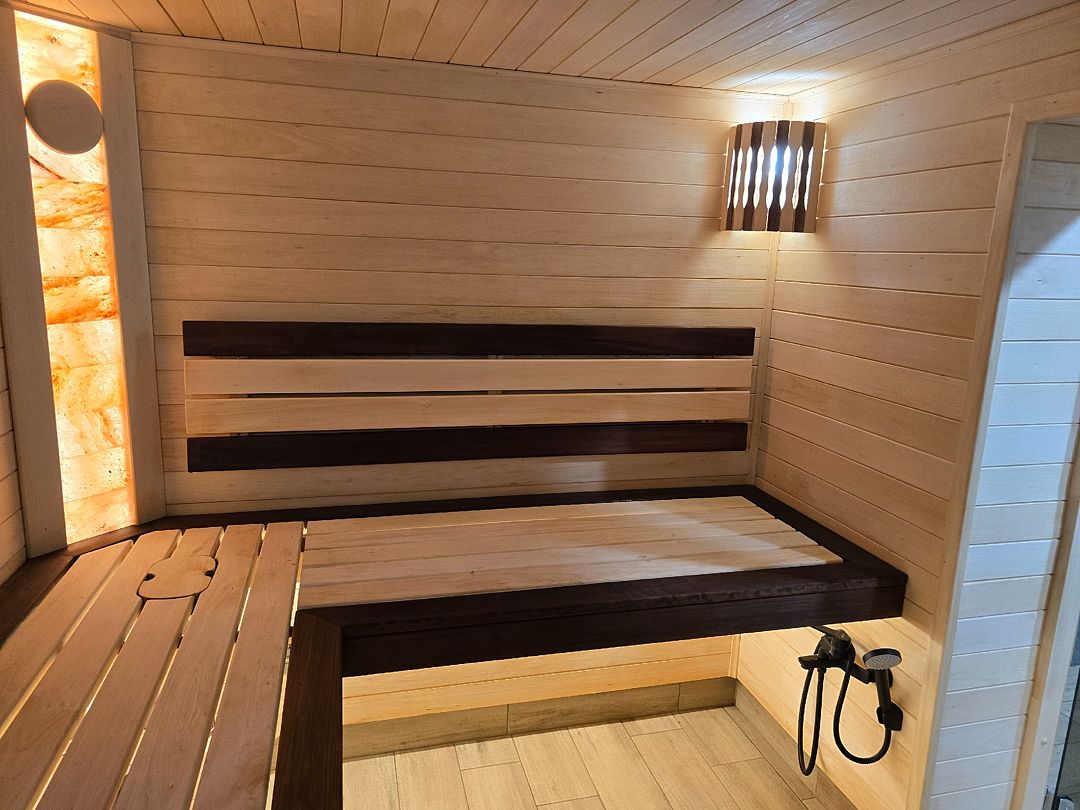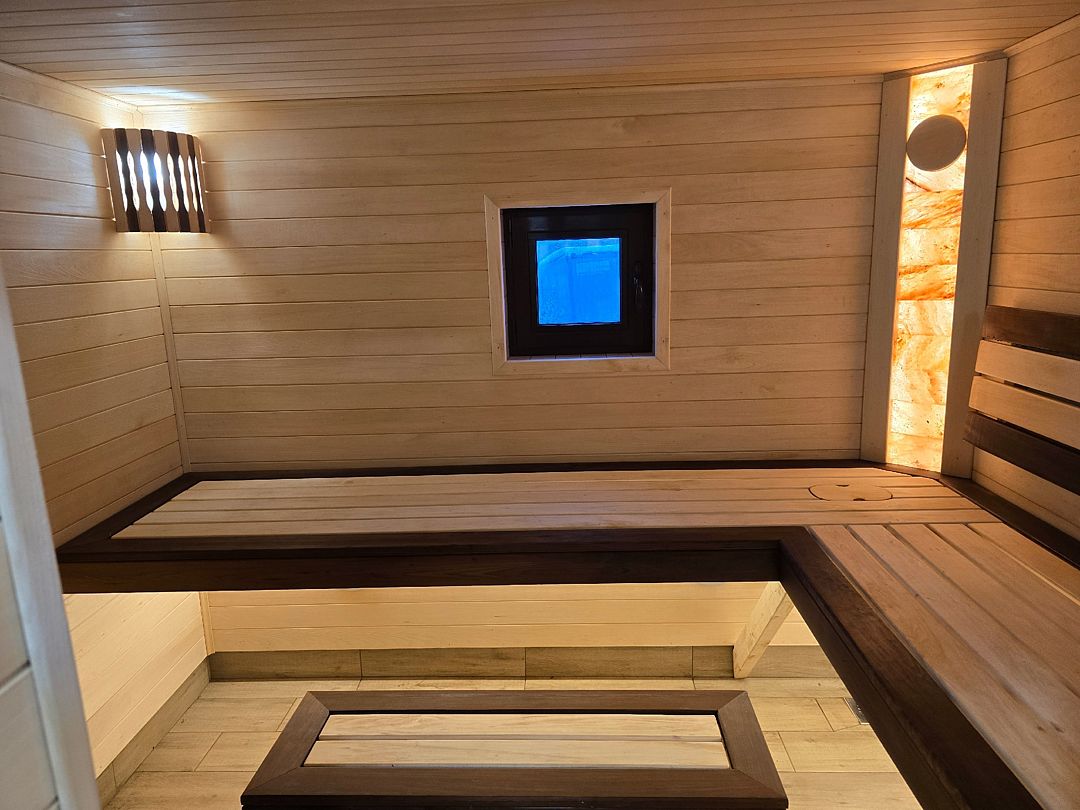 Читать полностьюПросторный предбанник, обставленный мягкими диванами и мини-кухней с теплыми полами, приглашает гостей расслабиться в приятной компании, наслаждаясь музыкой через Bluetooth. Внутри парной царит особая атмосфера — жар от раскаленных камней сочетается с прохладным свежим воздухом, проникающим через специальное отверстие.
