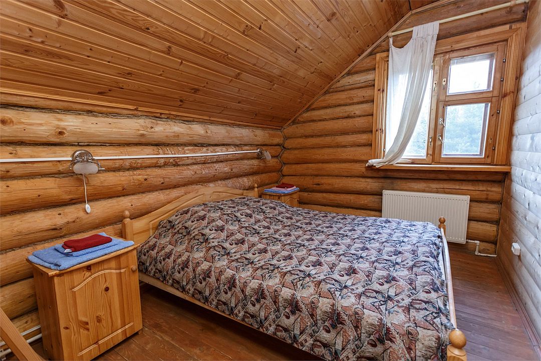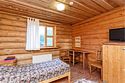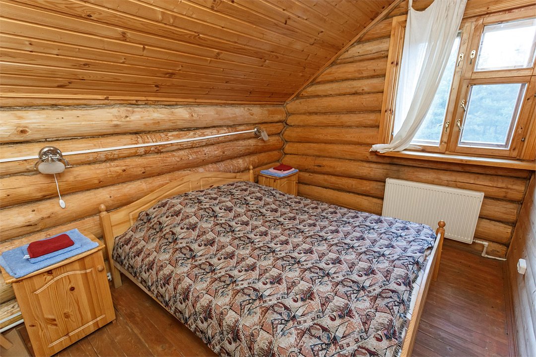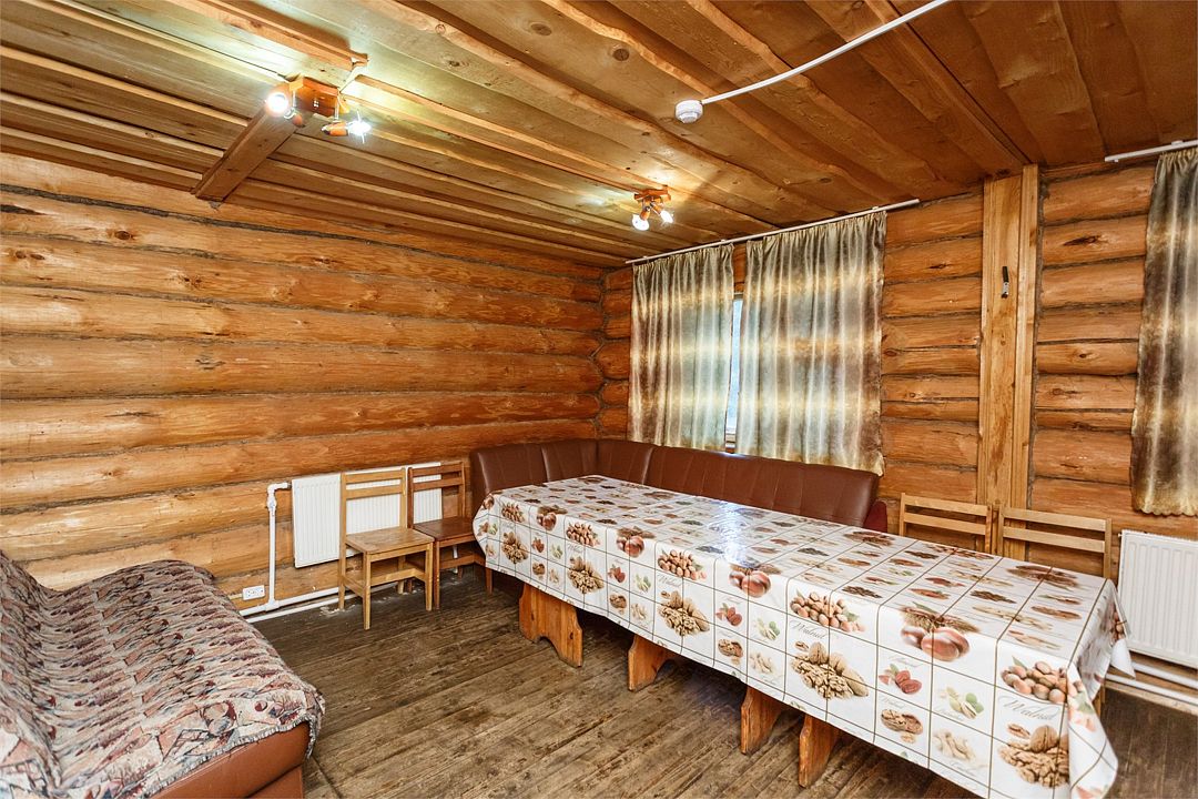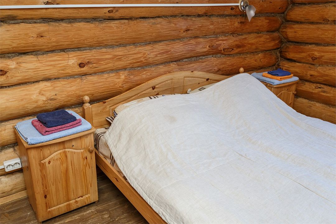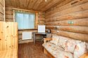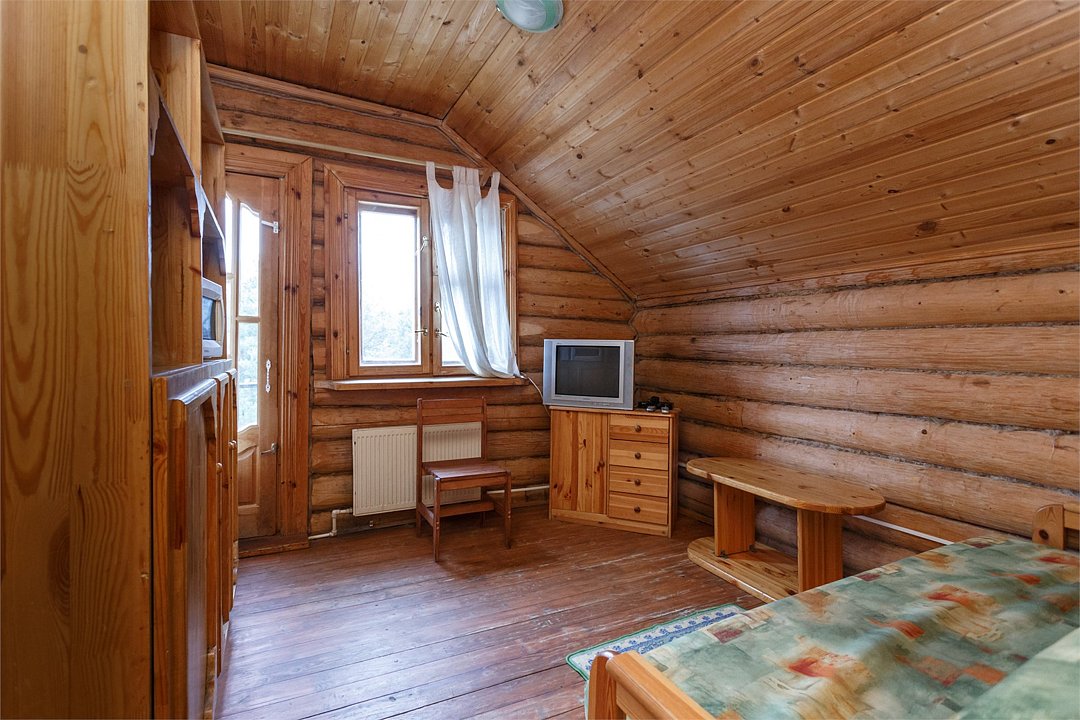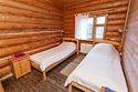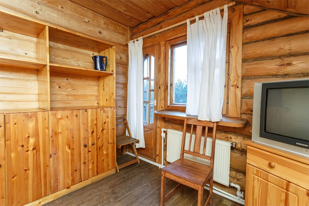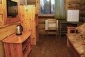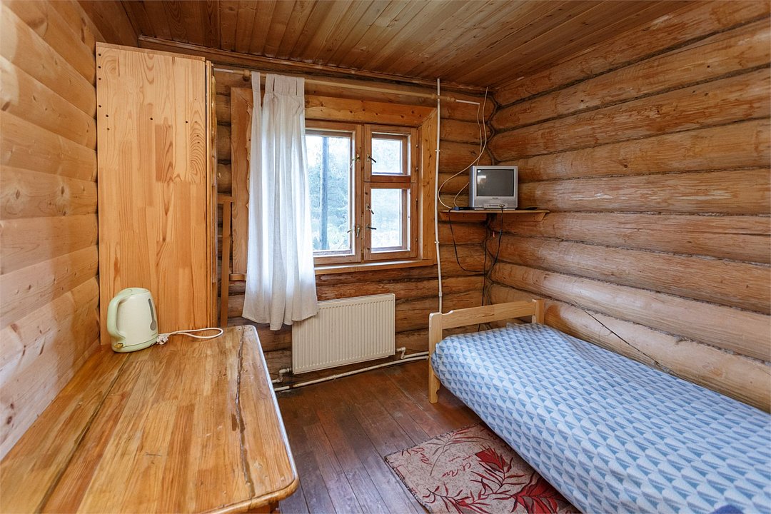 Двухместный номер «стандарт» малый площадью 25 кв.м. — две просторных комнаты, где семья или небольшая группа туристов может отдохнуть за небольшую сумму. Помещение чистое, светлое с бревенчатыми стенами, деревянным потолком и полом. Интерьер в эко-стиле задает положительный настрой.