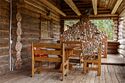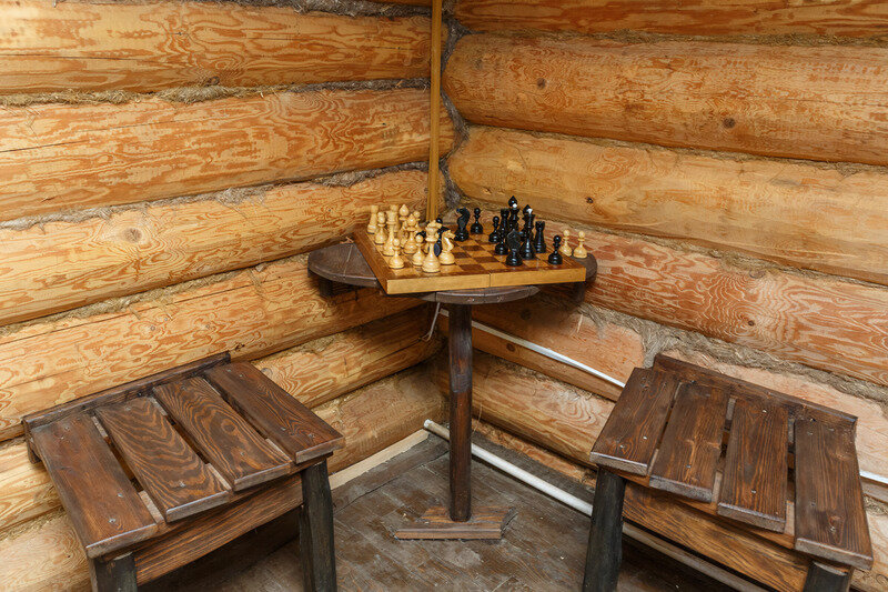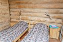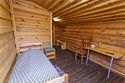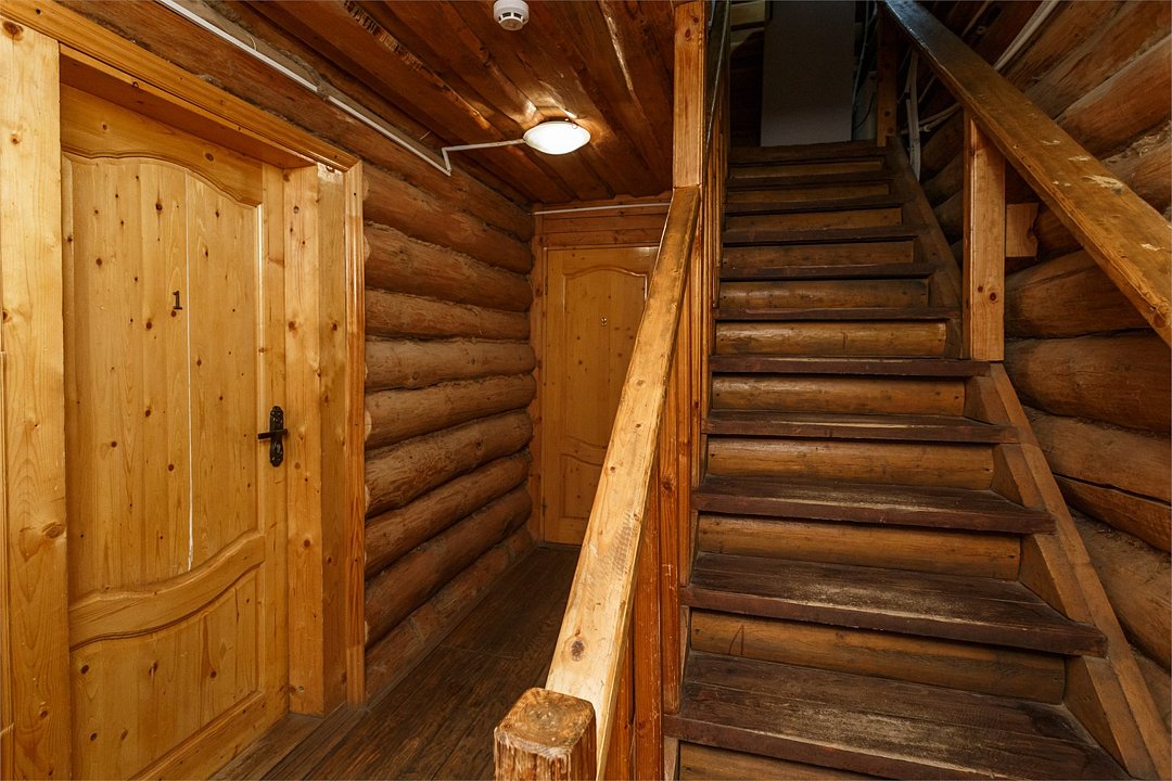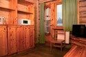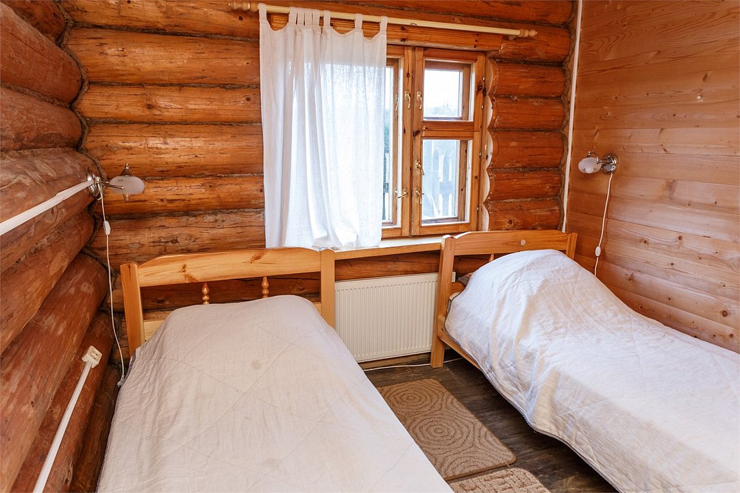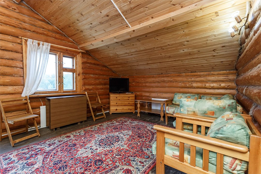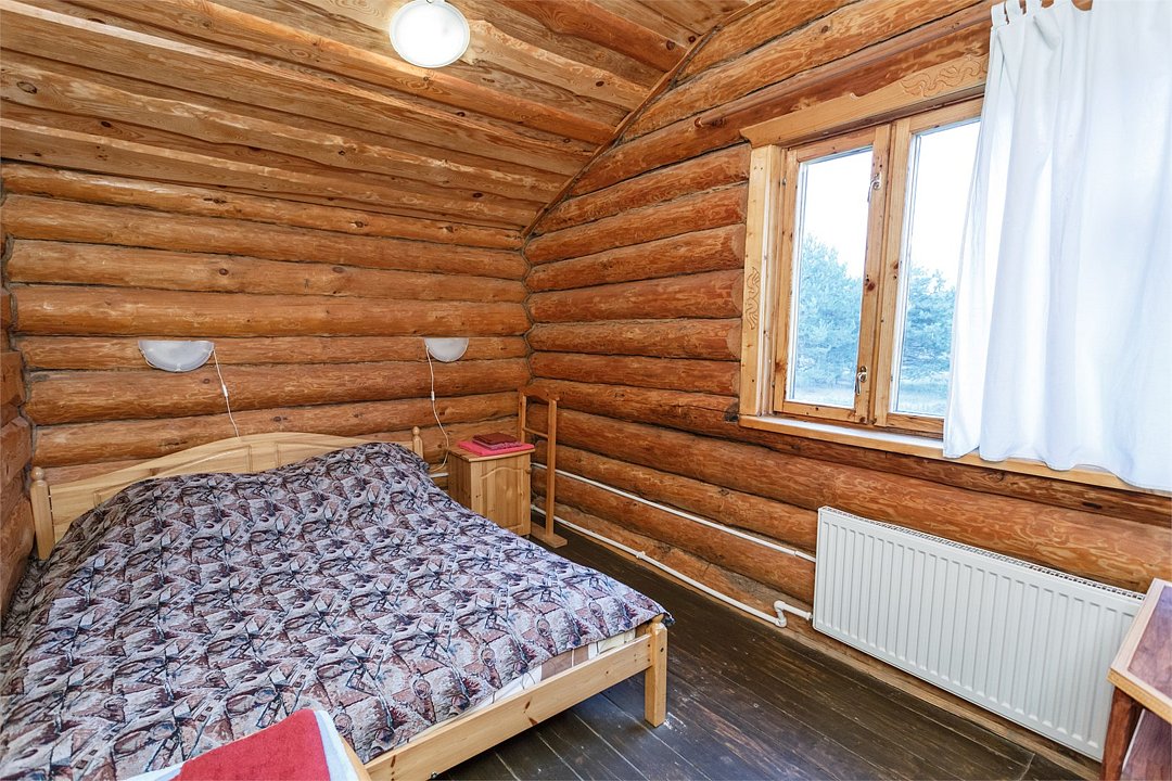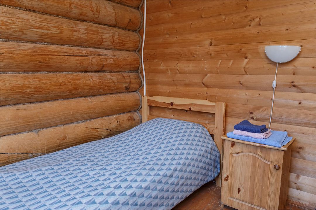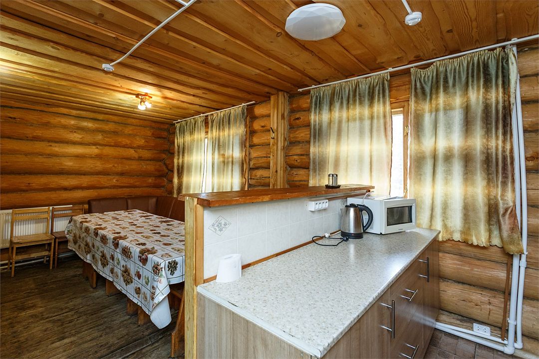 Двухместный номер «стандарт» малый площадью 25 кв.м. — две просторных комнаты, где семья или небольшая группа туристов может отдохнуть за небольшую сумму. Помещение чистое, светлое с бревенчатыми стенами, деревянным потолком и полом. Интерьер в эко-стиле задает положительный настрой.