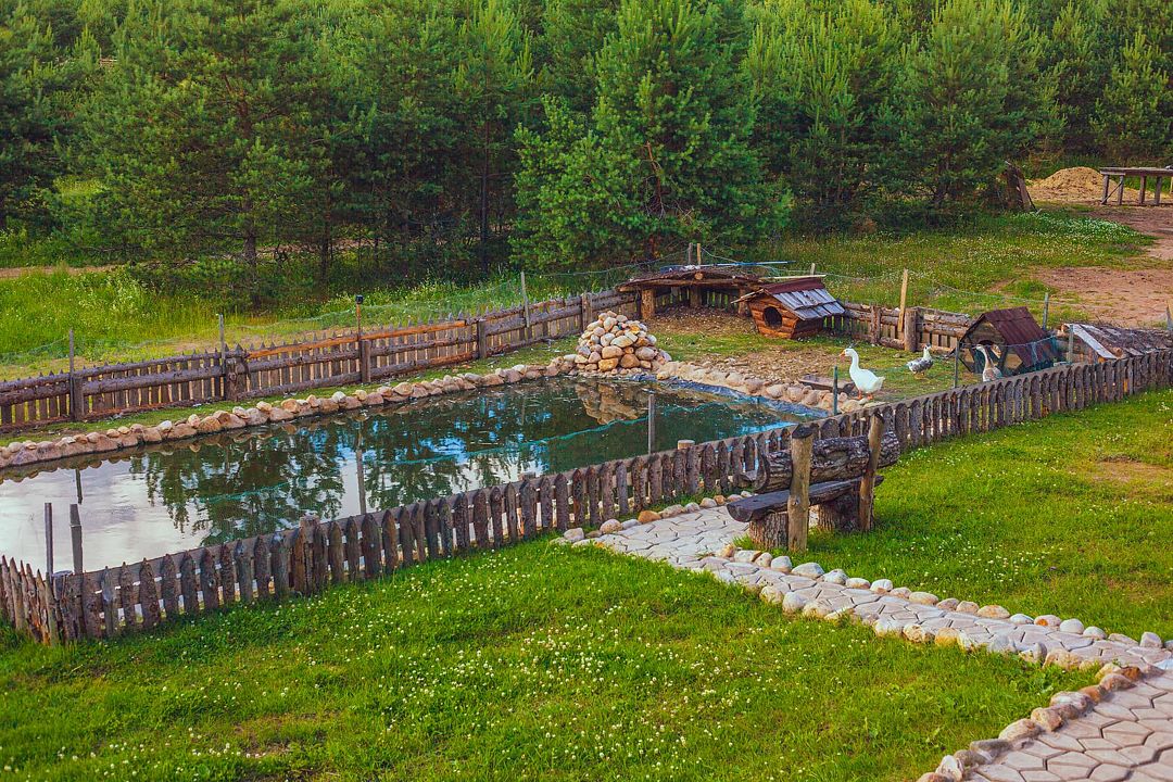 На территории находится кафе с домашней русской кухней по доступным ценам. Бесплатно предоставляются беседки с мангалами. Гостям доступны такие услуги, как баня, конференц-залы, охраняемая парковка, организация мероприятий, а также прокат разнообразной техники, включая велосипеды и лодки. Для детей оборудована игровая площадка, а зимой заливается горка для ледянок и каток.