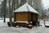 Домик с беседкой - отдельный одноэтажный рубленый домик, рядом с которым находится малая беседка, с возможностью установки мангала.