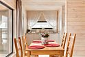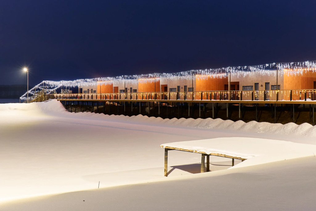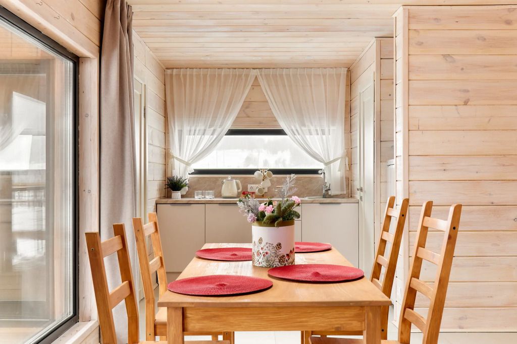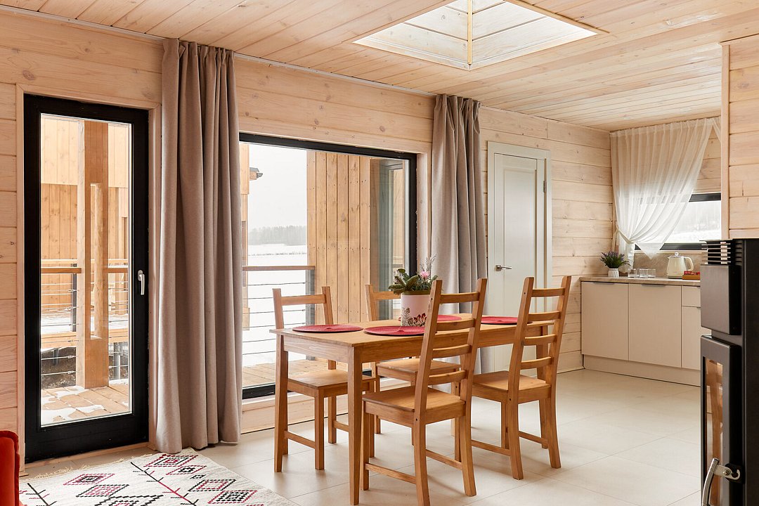 Домики построены по многослойной немецкой технологии и имеют дополнительное утепление с учетом климата России. Теплые полы, горячее водоснабжение, санузел, кухня, холодильник, камин, верхний свет, видеосистема проекционного типа, раздельные спальни, интернет, система внешнего видеонаблюдения в целях безопасности.