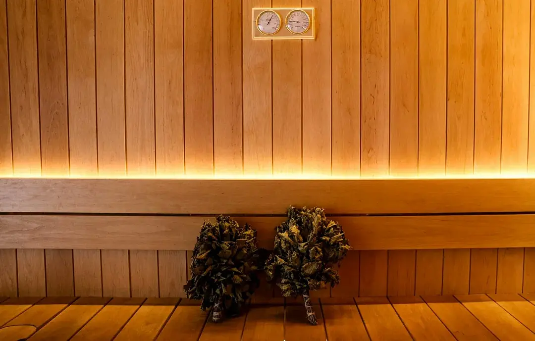Гостям предоставляются все необходимые банные принадлежности: тапочки, халат, шапка, а также березовый веник и ароматный чай.