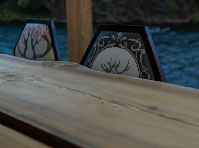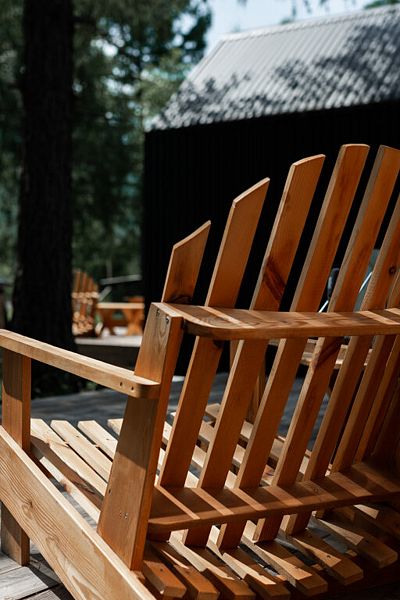 У каждого домика есть собственная терраса, оборудованная местами для комфортного времяпровождения. Именно с нее открывается прекрасный вид на горы, реку и небольшое озеро.