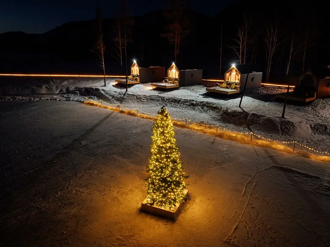 На территории работает Wi-Fi. Также к Вашим услугам уютная банька, находящаяся на территории глэмпинга и ресторан, в котором можно вкусно поесть.