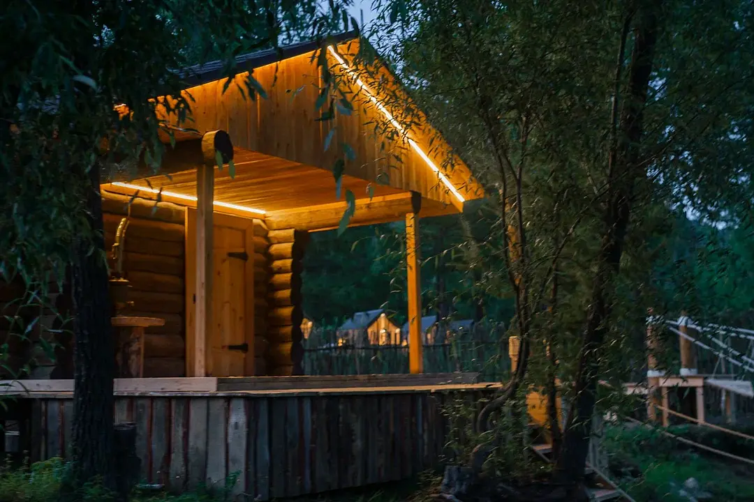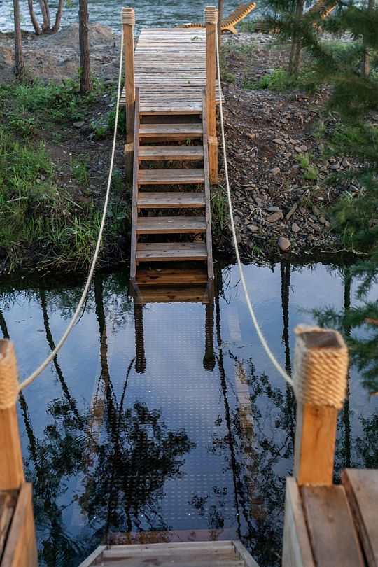 Инфраструктура: обливное ведро, душРусская баня подарит гостям возможность расслабиться и отдохнуть после насыщенного дня. Баня имеет свою открытую террасу и территорию, полностью оборудованную для идеального отдыха. Канатный мост на соседний островок и собственное озеро, в котором можно окунуться.