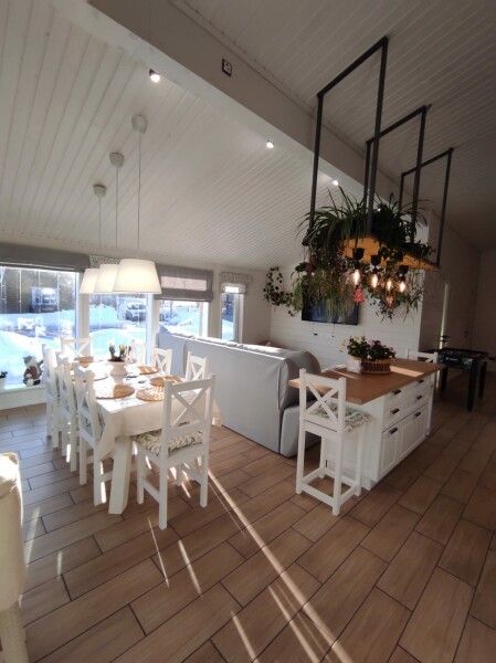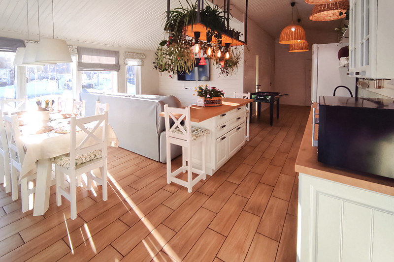 Дом в стиле барнхаус ждет гостей для незабываемого отдыха. Комфортный, большой, в приятных светлых тонах и с живыми цветами никого не оставит равнодушным.