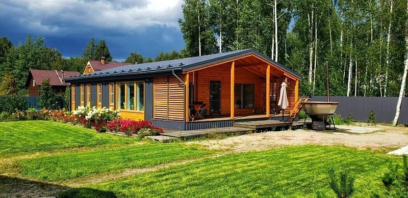 В доме три спальни, два санузла и две душевые, просторная кухня-гостиная. На территории дома есть два входа, крытая терраса площадью 27 м² и зона для барбекю с навесом. Открытая терраса проходит по всему периметру дома, что позволяет наслаждаться свежим воздухом и красивыми видами. Для автомобилей предусмотрена удобная парковка на шесть мест.