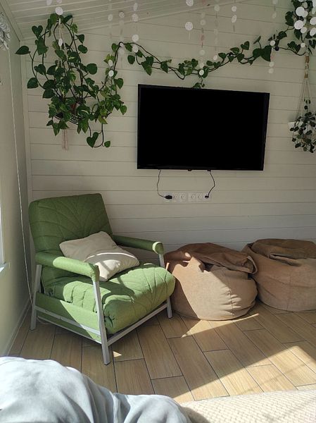 Глэмпинг «MouseHouseNN» предлагает отдохнуть в стильном барнхаусе, оформленном в светлых тонах и украшенном живыми цветами. В доме есть все необходимое для комфортного отдыха: теплые полы, посуда, полотенца, простыни для сауны, постельное белье, фен и средства гигиены.