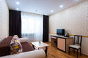 Жили на первом этаже в стандартном номере. Номер просторный, чистый, с балконом и видом на сосны, воздух свежий. На этаже кулеры, в номере чайный набор. Сильной слышимости не заметили. Заказывали еду в номер - всё достаточно вкусно, быстро.