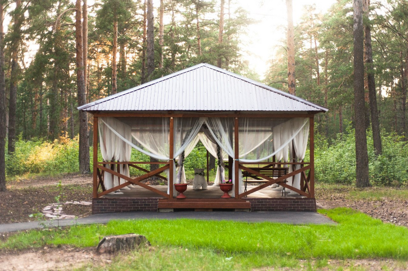 Беседки с полом и крышей. Беседки оснащены всем необходимым для приятного и комфортного отдыха: мебелью (столы, лавочки), мангалом, углем, решеткой для барбекю и средством для розжига. Арендовать беседку для себя и друзей можно и без проживания в Загородном клубе «Олимпия».