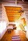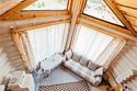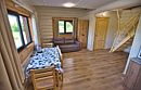 В доме находится пять спален (две на 1 этаже, две на втором), пятая спальня – в мансарде. Там же установлены односпальная и двуспальная кровати. Дополнительные места для ночлега обеспечивают три дивана, двуспальных – они установлены и на нижнем, и на втором этаже дома.