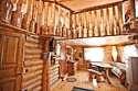 В избе есть все удобства – ванна, 2 туалета, оборудованная кухня с холодильником, печью СВЧ, плитой и полным набором утвари, посуды.