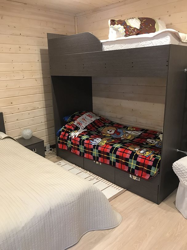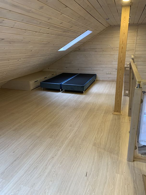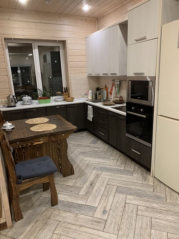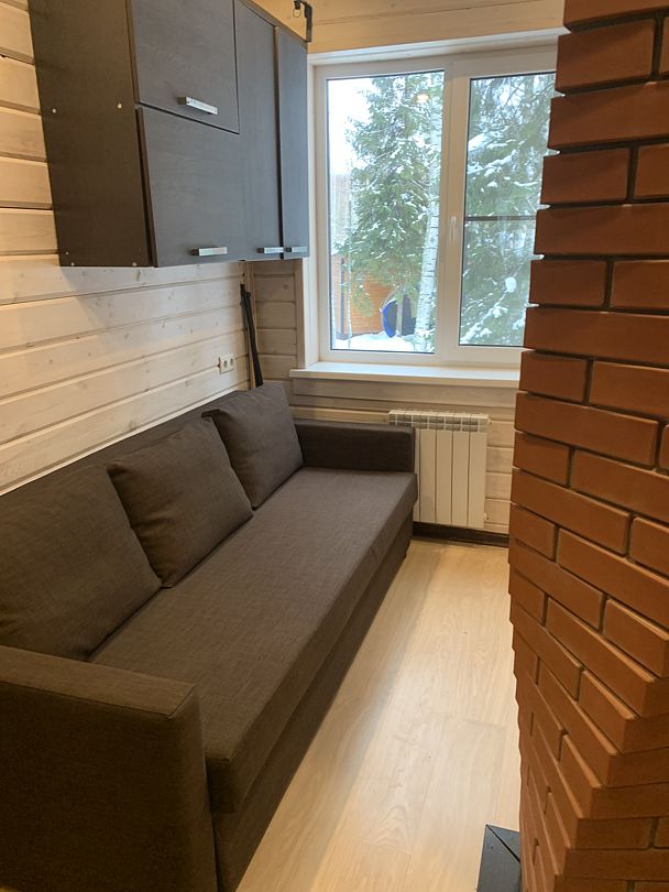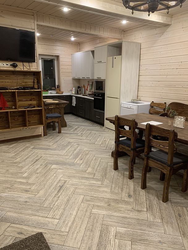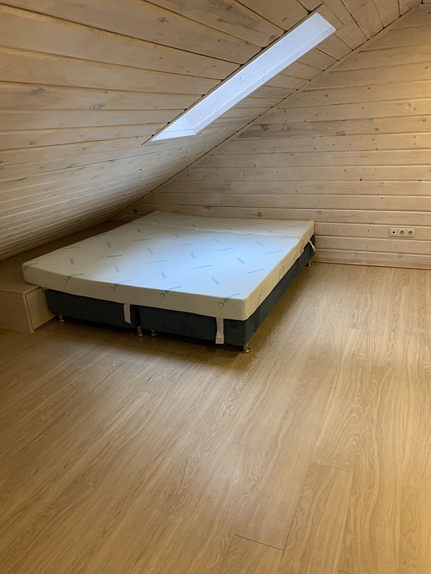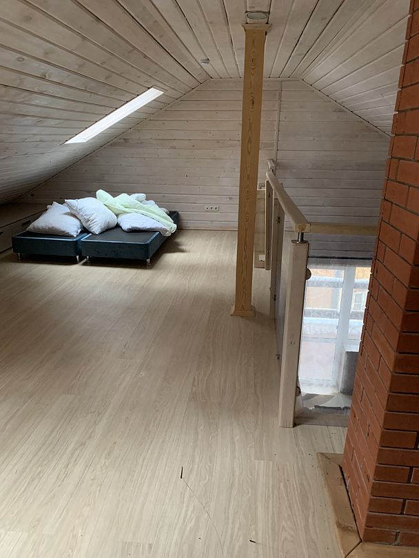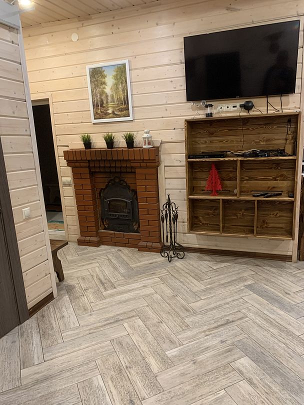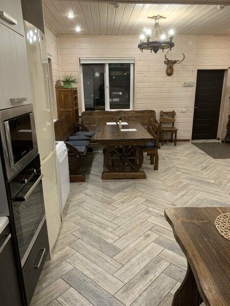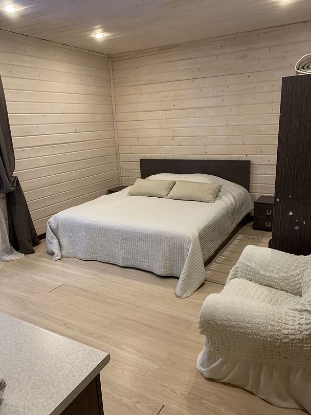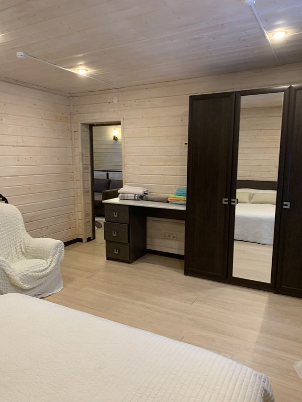 Большой дом (160 м²). Вместимость: 14–15 человек. Три комнаты, два холла, с спальными местами. Гостиная, для пятнадцати человек. Банный комплекс на первом этаже. Можно с животными.