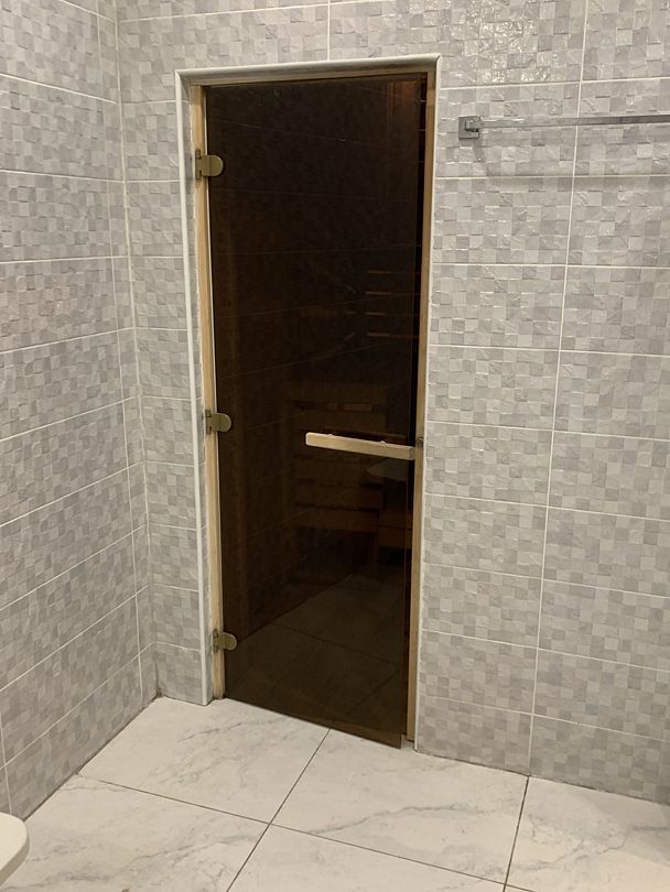 Банный комплекс расположен на первом этаже коттеджа. После активного дня на свежем воздухе можно расслабиться в парной, погрузившись в атмосферу тепла и покоя.