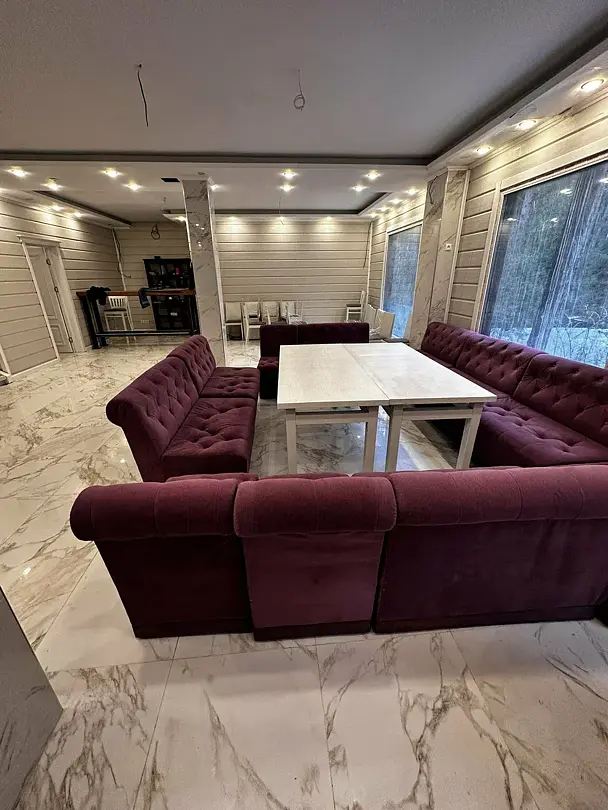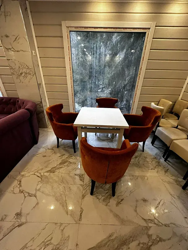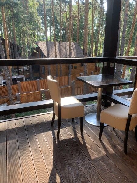 На первом этаже гостиницы «Лес Клуб Атмосфера» находится стильный банкетный зал, идеально подходящий для свадеб, корпоративов, тренингов и других торжественных мероприятий.
