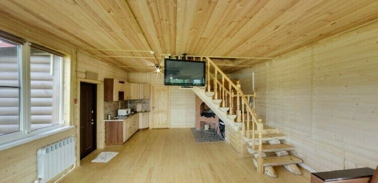 В каминном зале оригинальный действующий камин, большой банкетный стол, просторный диван для отдыха. Телевизор с приемником, более 100 каналов. Кухня оборудована мебелью, холодильником, СВЧ печью.