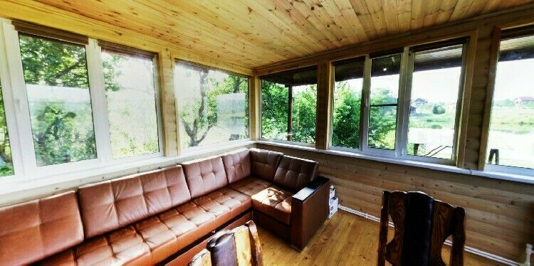 Большой раскладной диван, кухонный уголок, плита, СВЧ печь, посуда, холодильник. Телевизор с приемником транслирует более 100 каналов.