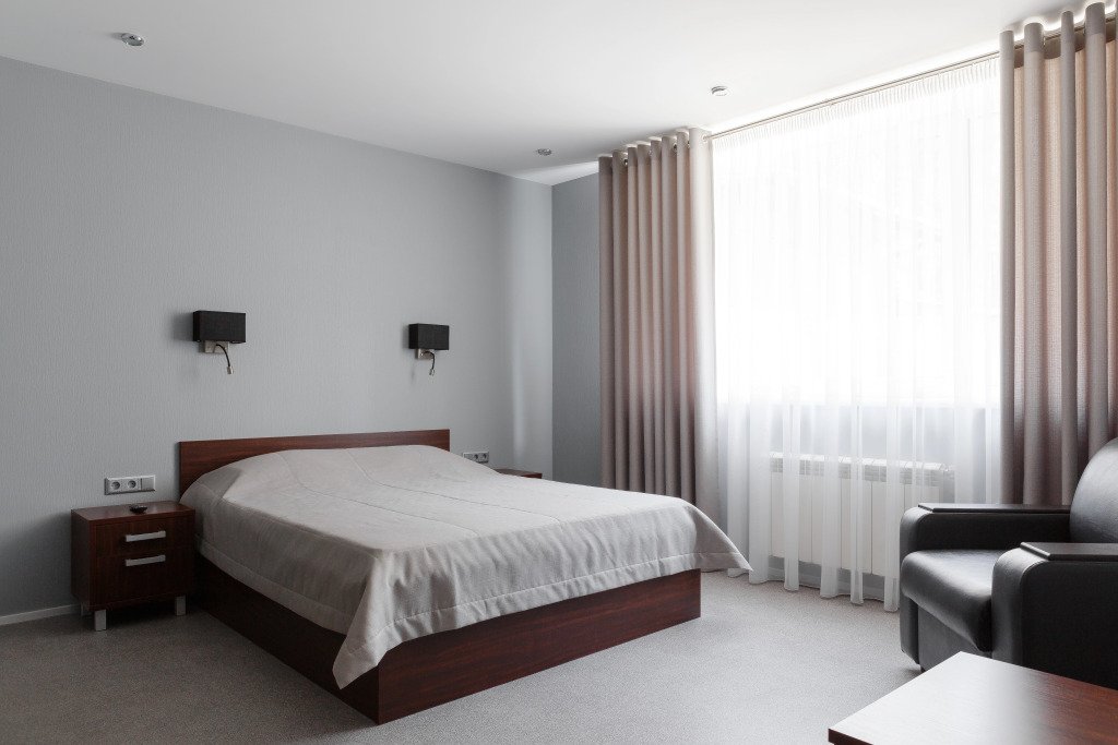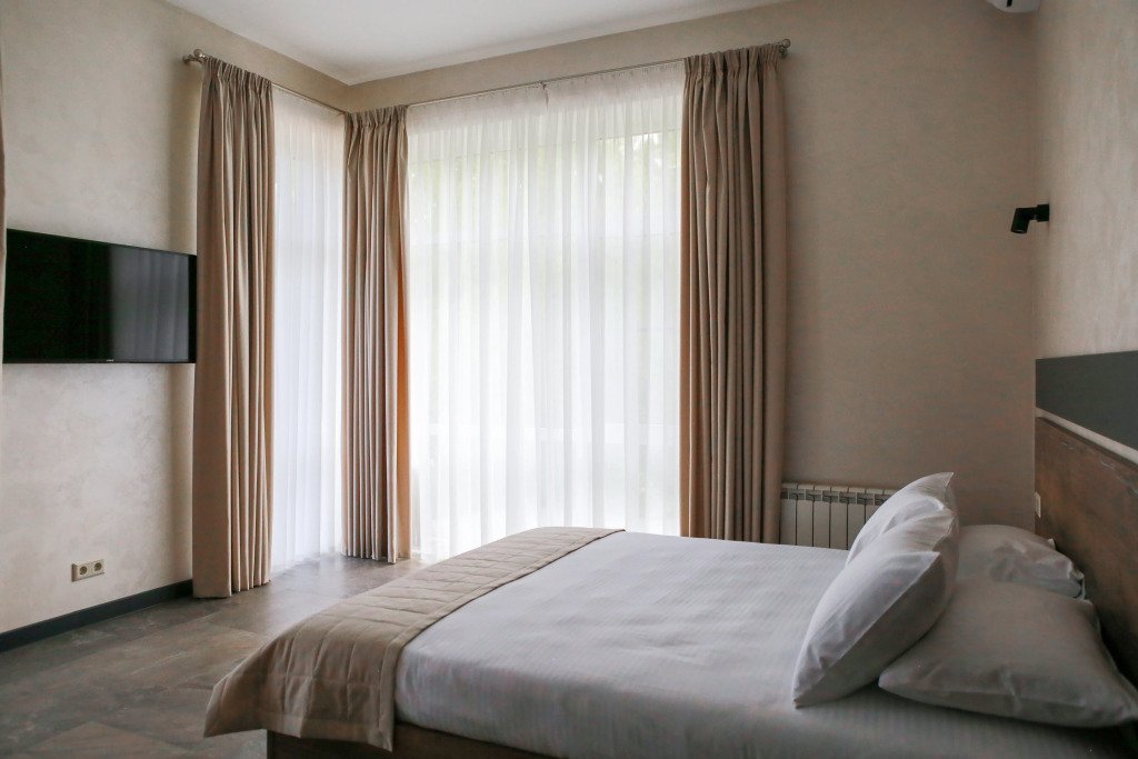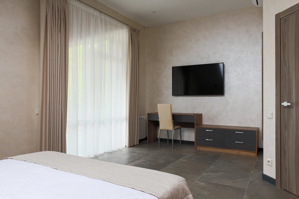 В номерах современный ремонт. Всегда тепло и есть горячая вода. Большая двуспальная кровать, телевизор, сейф, чайник, кондиционер. Бесплатный Wi-Fi.