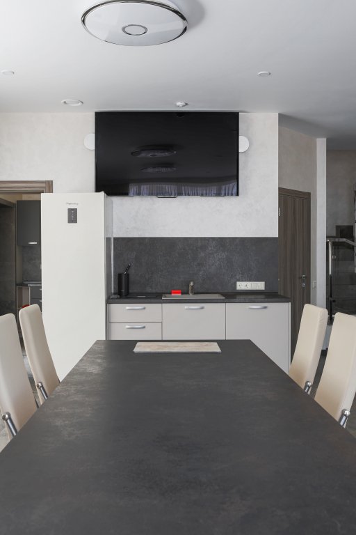 Прямо в коттедже находится 3 спальни, ванная комната с туалетом, гостиная совмещенная с кухней. По центру гостиной большой обеденный стол, диван, напротив которого телевизор с цифровым сигналом — 20 эфирных каналов с идеальной картинкой. Кухня оборудована холодильником, микроволновой печью, чайником, набором посуды и столовых приборов.