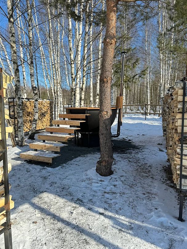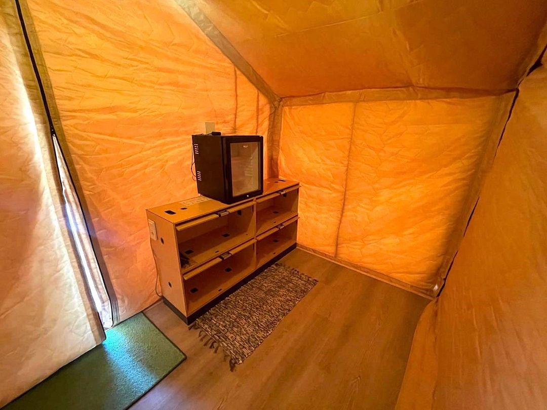 Возле сафари-тентов расположился классический банный чан, предоставляющий уникальную возможность расслабиться на свежем воздухе. Это идеальное место для семейных выходных или романтического свидания, где можно наслаждаться атмосферой уединения и гармонии с природой.
