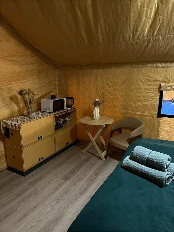При бронировании сафари-тента — в подарок катание на лошадях для двоих человек. Рядом расположен банный чан, который вы можете использовать за дополнительную плату.