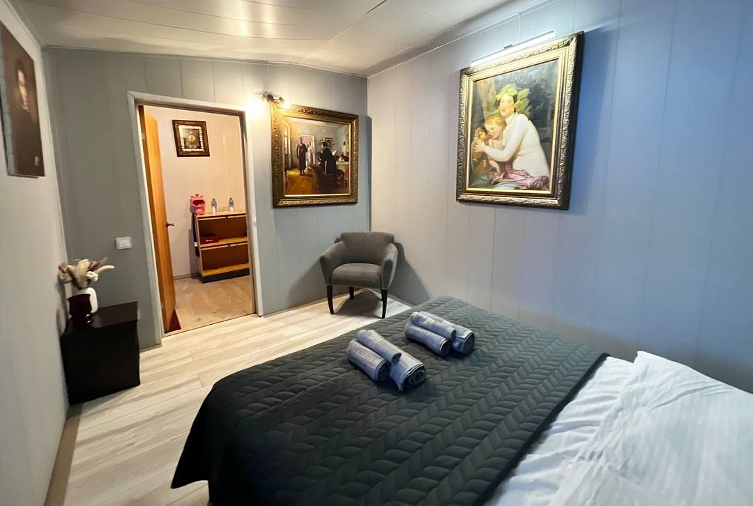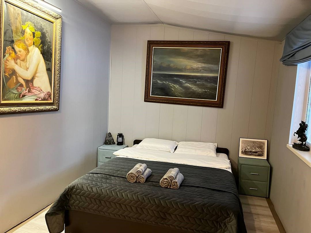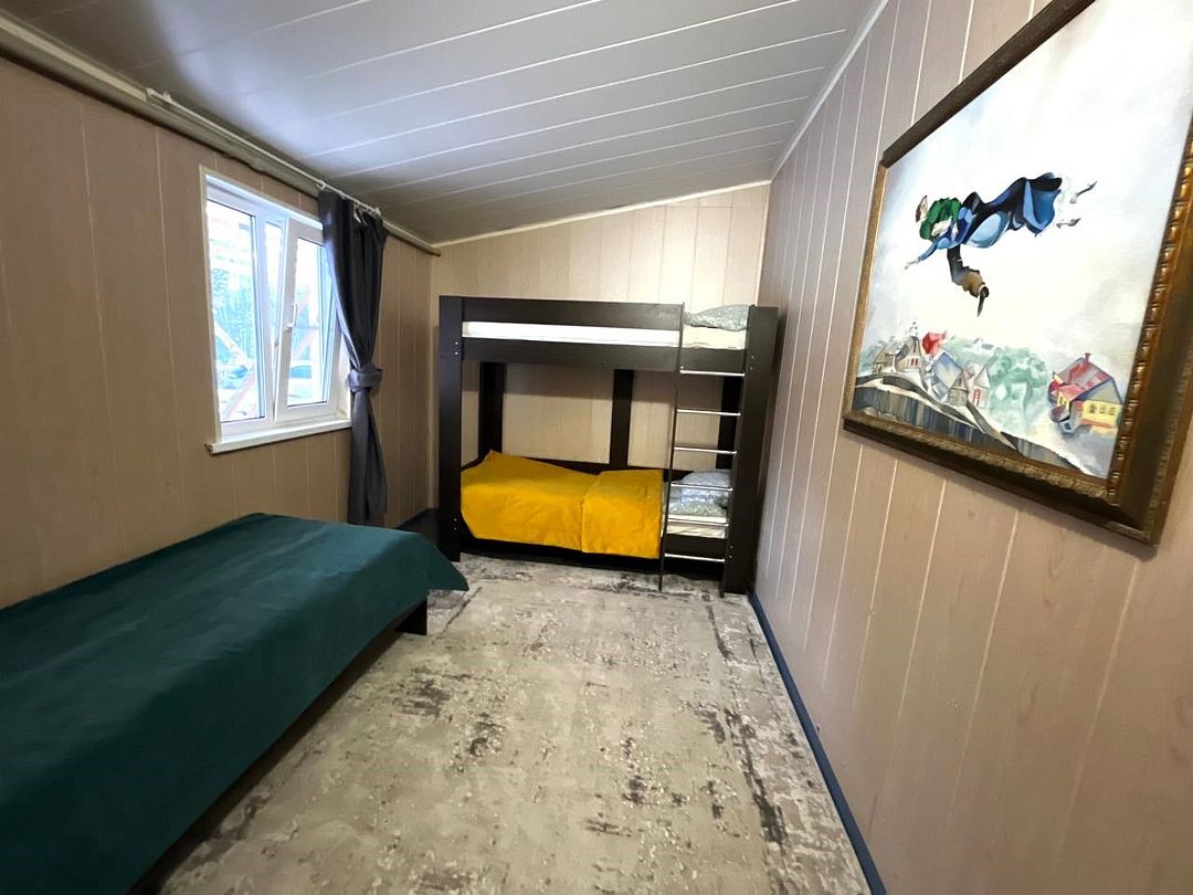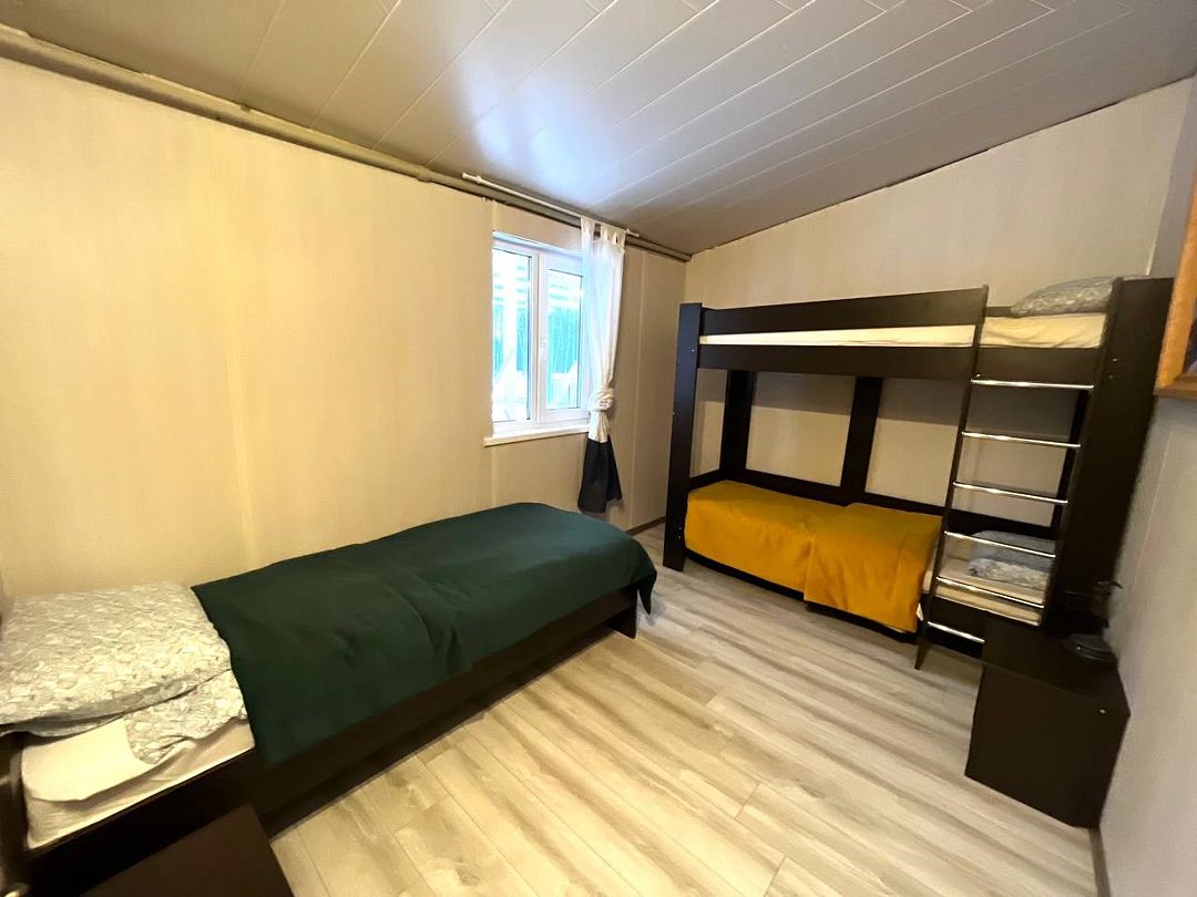Двухкомнатный номер с двуспальной, двухъярусной и односпальной кроватями. Номер оборудован электричеством, водой, душем и туалетом.