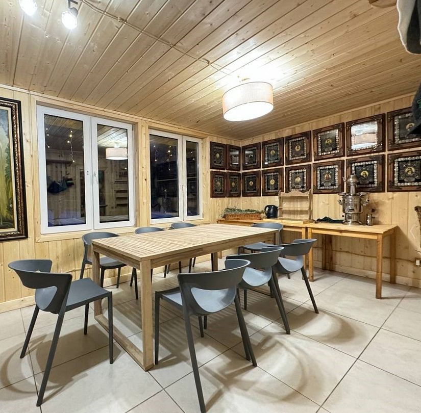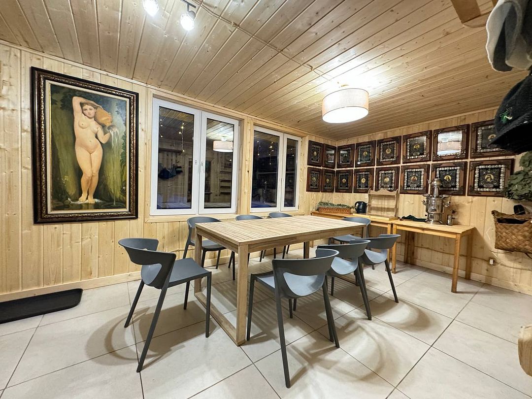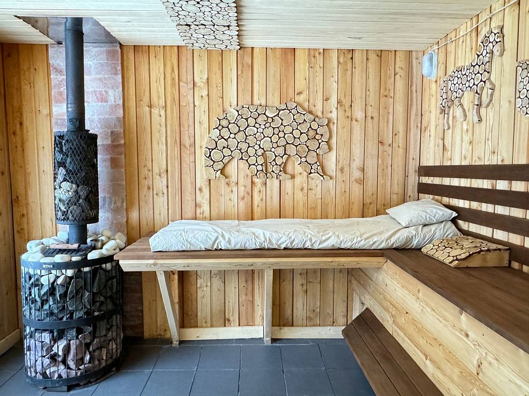Баня - это не просто способ очистить тело, но и возможность восстановить душевное равновесие. У нас она особенно волшебная: тёплый пар, мягкий свет и панорамный вид на хвойный лес создают атмосферу уединения и гармонии. Стоимость за 3 часа. Веники и чан оплачиваются отдельно. Вместимость до 10-12 человек.