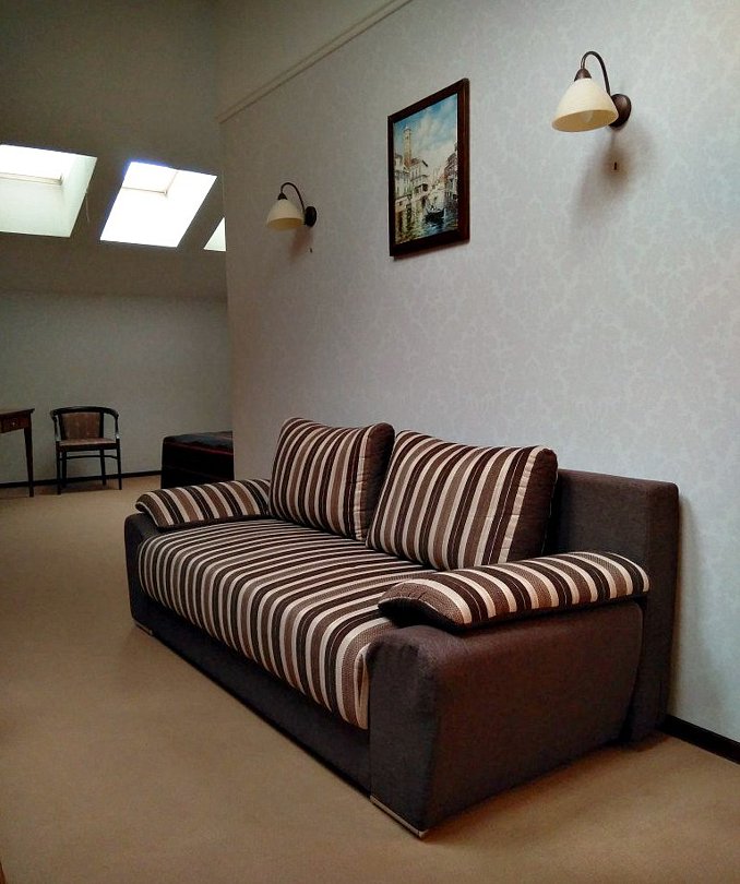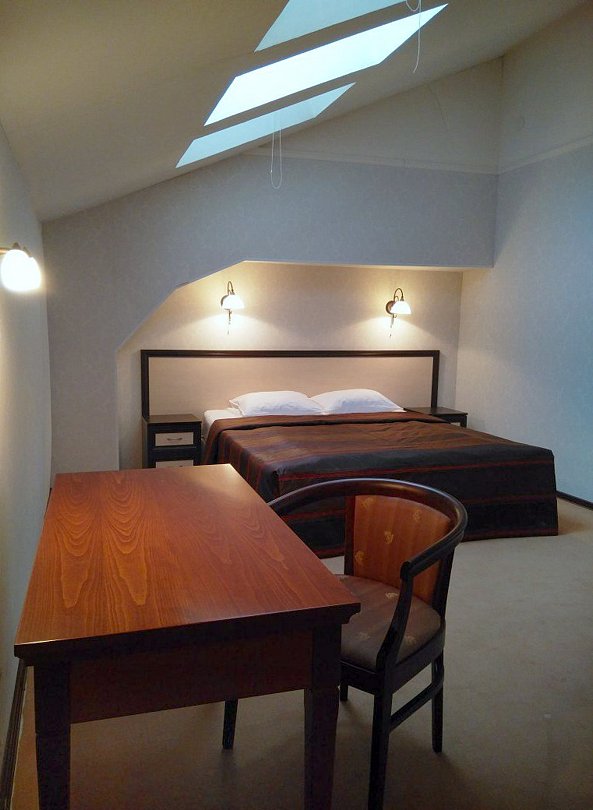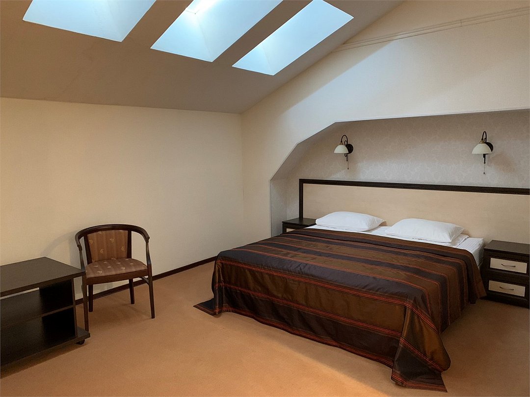 В номере — односпальная кровать с ортопедическим матрасом, гипоаллергенное белье, журнальный столик, стул, телевизор, ванная комната с душевой кабиной, кондиционер, мансардные окна. Номер для некурящих.Услуги и удобства