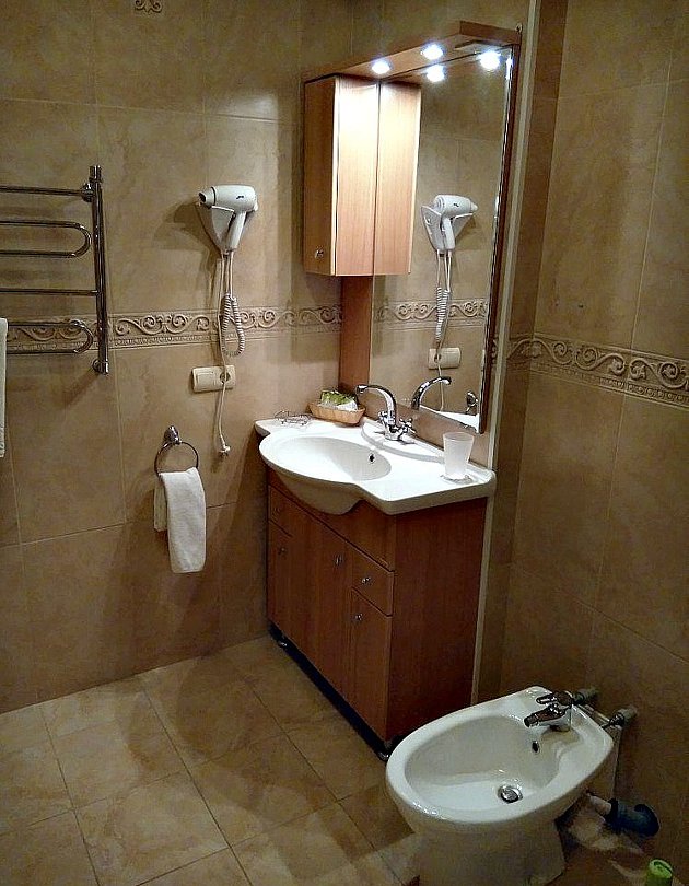 телевизор, Wi-Fi, телефон, кондиционер, светильник, настольные лампы, фен, электронные замки, ванная комната, ванна, санузел, биде, банные принадлежности, халаты, банные полотенца, тапочки, гигиенические средства, косметические средства, двуспальная кровать, гипоаллергенное белье, ортопедический матрас, кресла, шкаф для одежды, вешалки, журнальный столик, багажная тумба, зеркало, информационная карта, меню, раковина, косметическое зеркало, питьевая вода, ковровое покрытие, отопление, вид на город, кулер на этаже, вид во двор, высокие потолки, стаканы, стул, стол, туалетный столик, туалетные средства, туалет, телевизор с плоским экраном, мини-холодильник, можно с питомцамиВ гостиничном номере