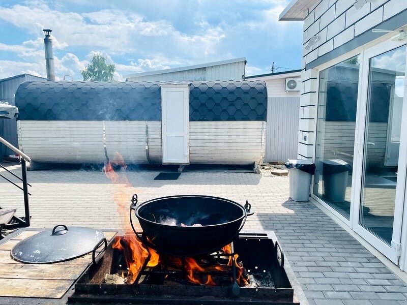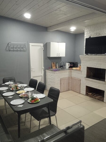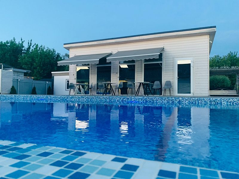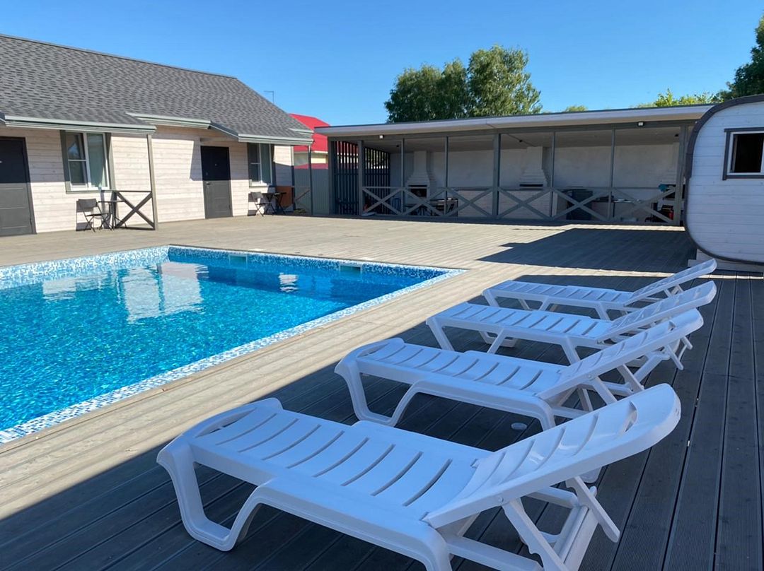 На ухоженной территории гостевого дома находится теплый круглогодичный бассейн, шезлонги, барбекю-зоны и уютная беседка, банкетный зал. Также есть релакс услуги — русская баня и чан, где можно не только отдохнуть душой, но и телом. Предоставляется бесплатный Wi-Fi на всей территории.