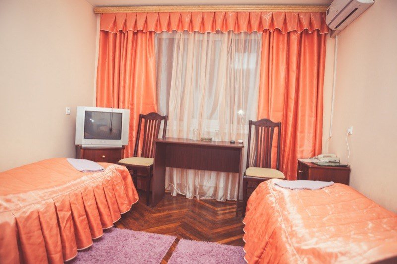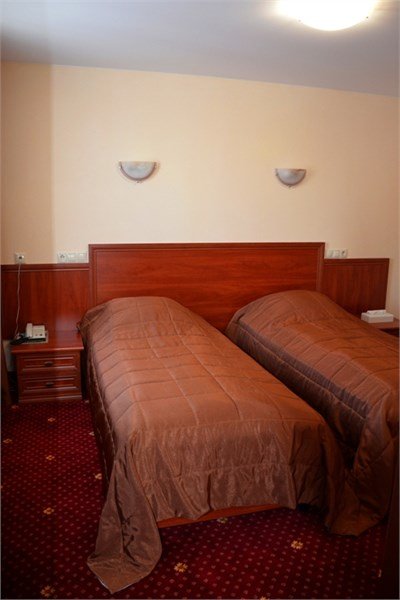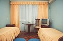 Две раздельные кровати 90х2000, стол, 2 стула шкаф ,кабельное телевидение, кондиционер, телефонная связь( международная, междугородная и внутренняя), душ, туалет. Фен, махровый коврик для ног. Гипоаллергенные постельные принадлежности. Белье из хлопка, махровые полотенца. Минибар.Услуги и удобства