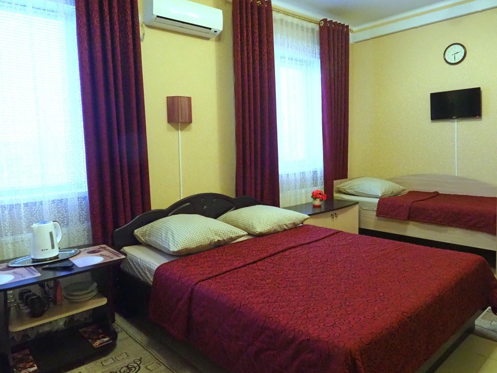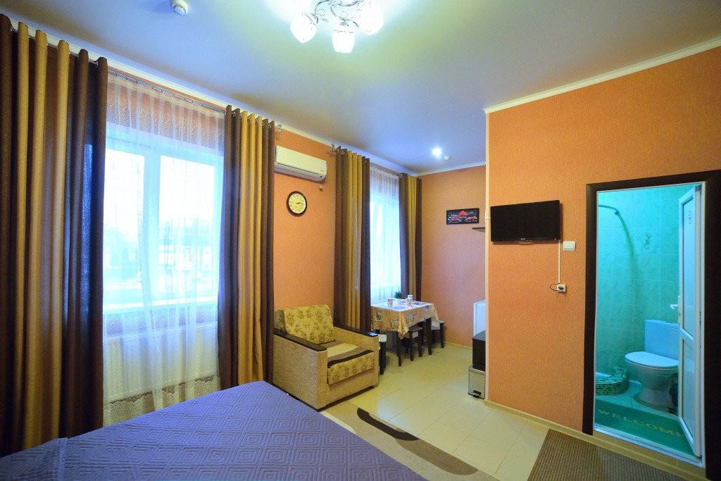 Номер уютно обставлен и оснащён необходимым, чтобы отдохнуть после долгого и насыщенного дня. Имеются телевизор. Оснащение зависит от выбранной категории номера.