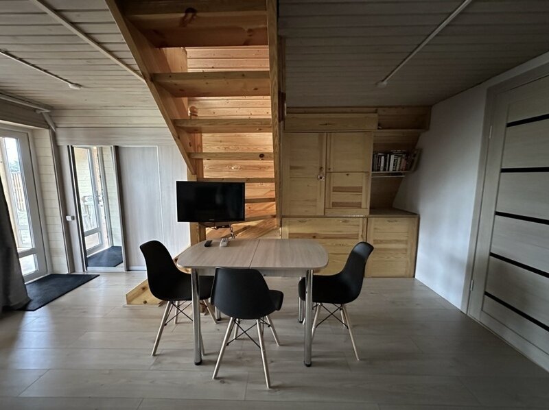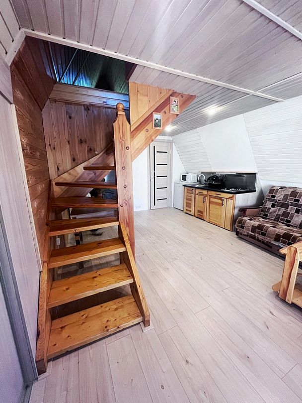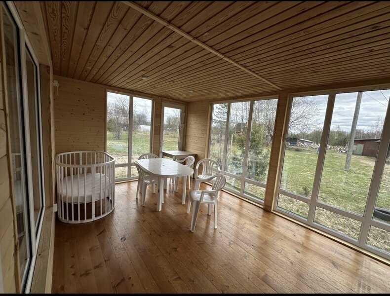 В доме две спальни, гостиная, полностью оборудованная кухня, большая закрытая веранда и санузел с душем. Есть доступ к Wi-Fi, а вода из крана пригодна для питья. Территория дома огорожена, есть парковка для автомобиля. Также есть мангальная зона и баня на дровах.