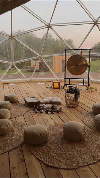 Проводятся духовные практики, направленные на глубокое погружение в подсознание и очищение от мыслей. Такой отдых отлично подойдёт для тех, кто хочет обрести внутреннее спокойствие и равновесие. В глэмпинге есть специализированная терраса для практик, в которой вас никто не побеспокоит.