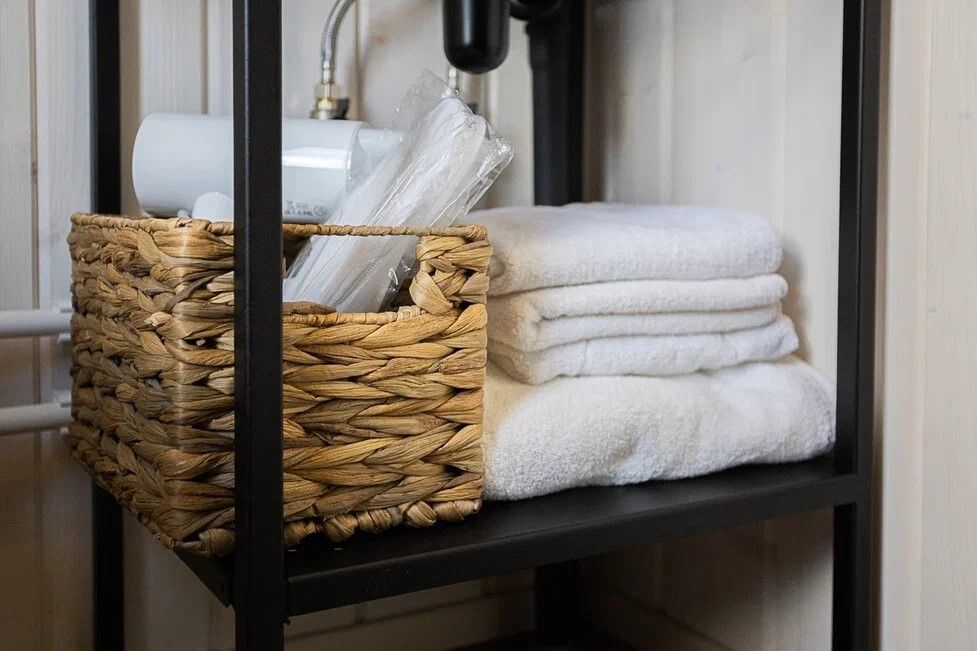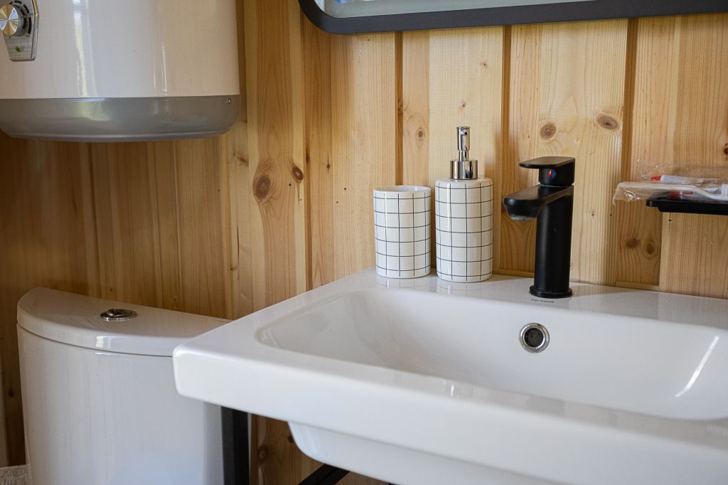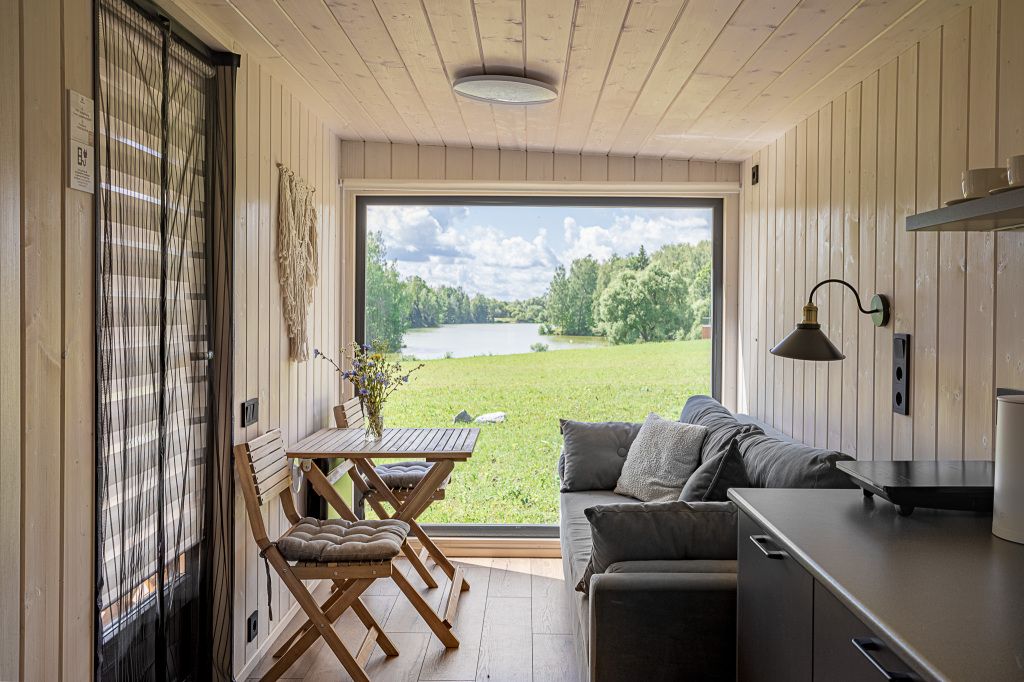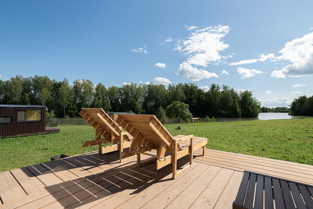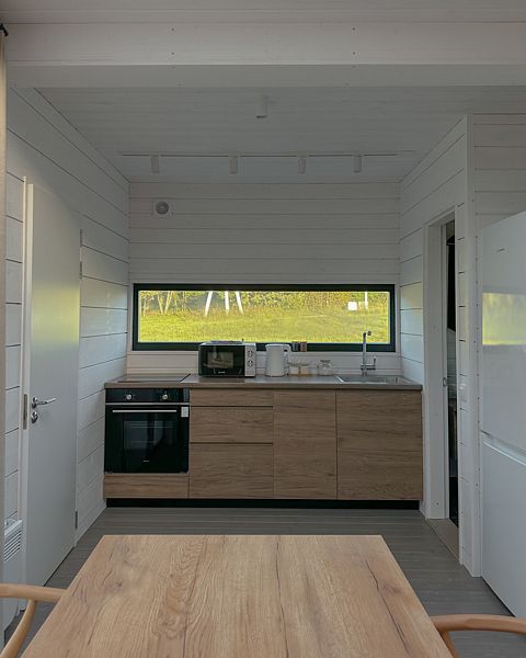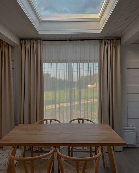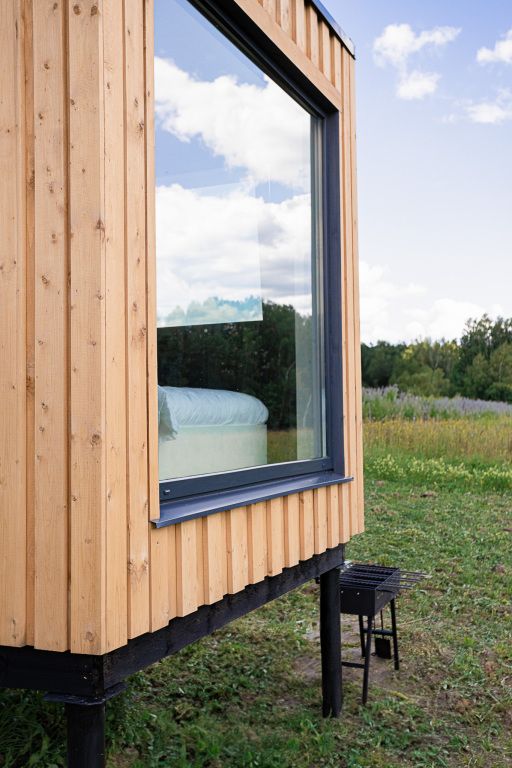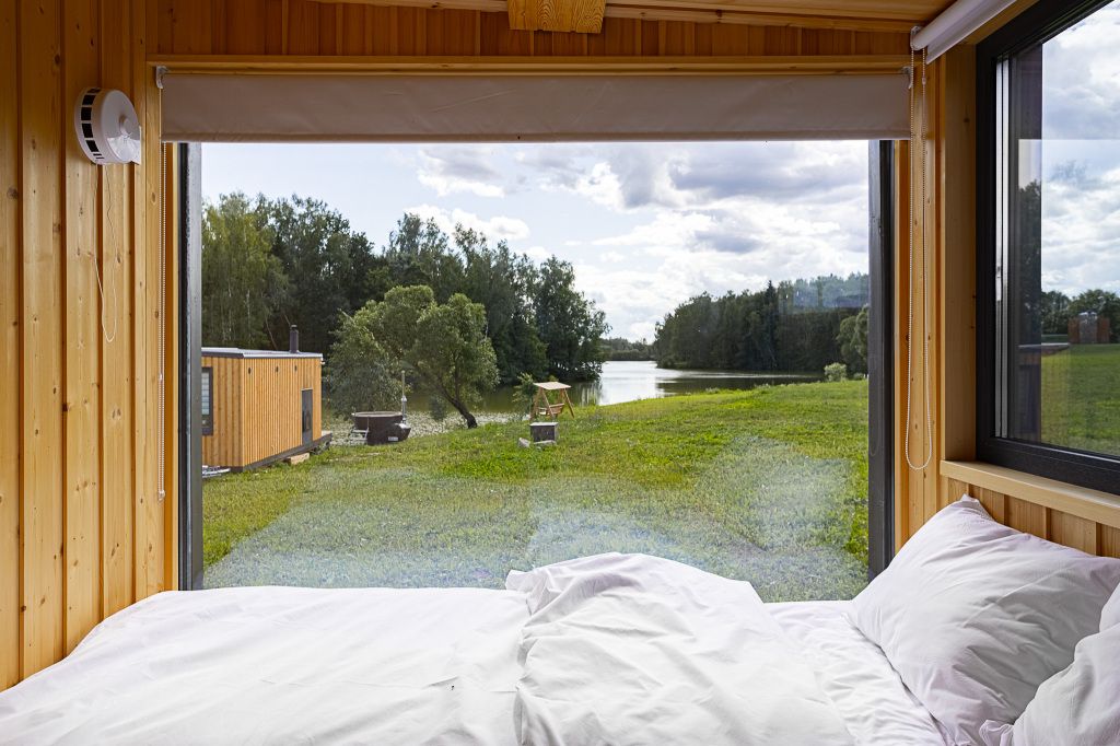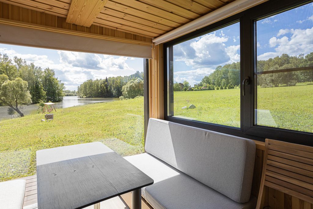 Домик расположен на берегу реки, которая берет начало прямо на территории глэмпинга! Из домика открывается панорамный шикарный вид на реку. В домике всегда тепло.