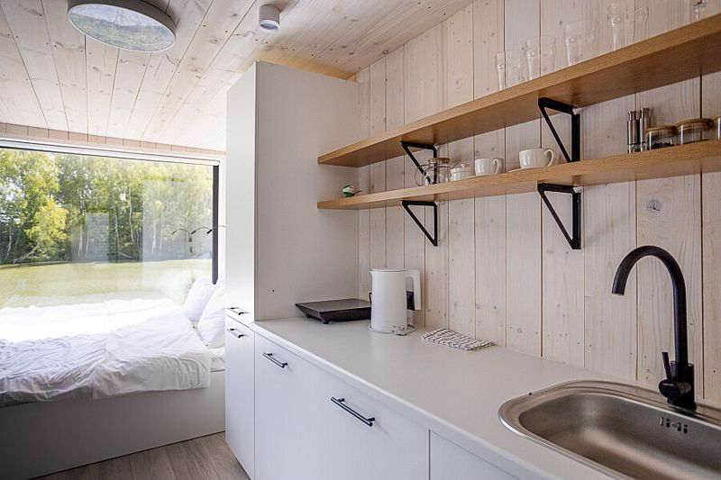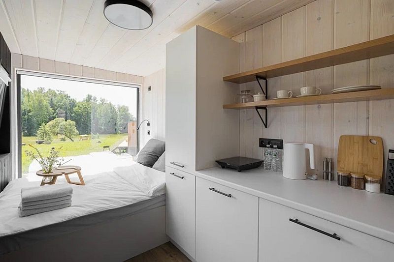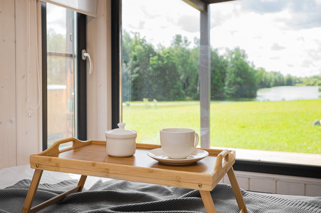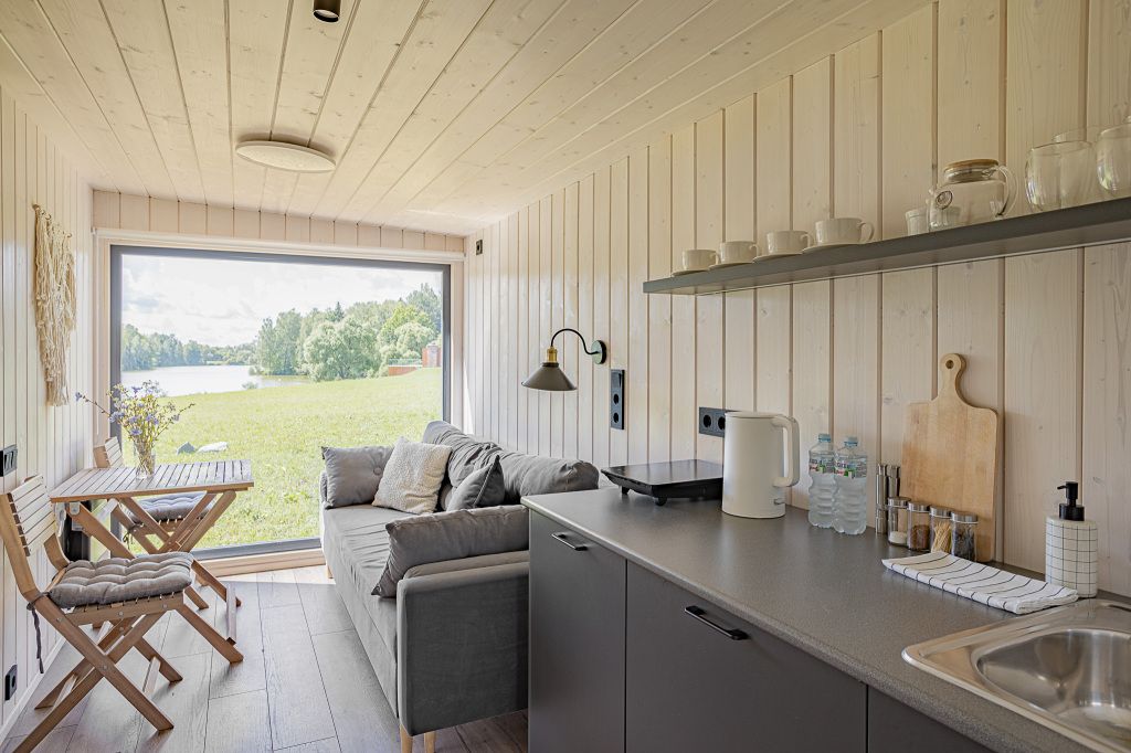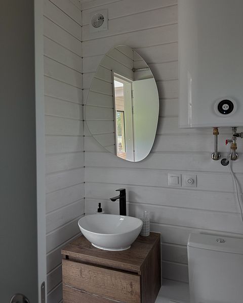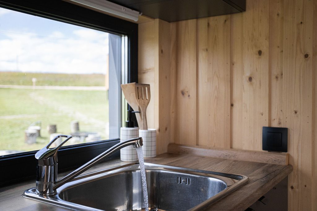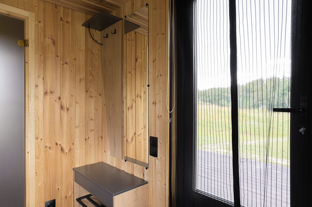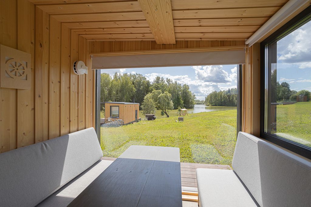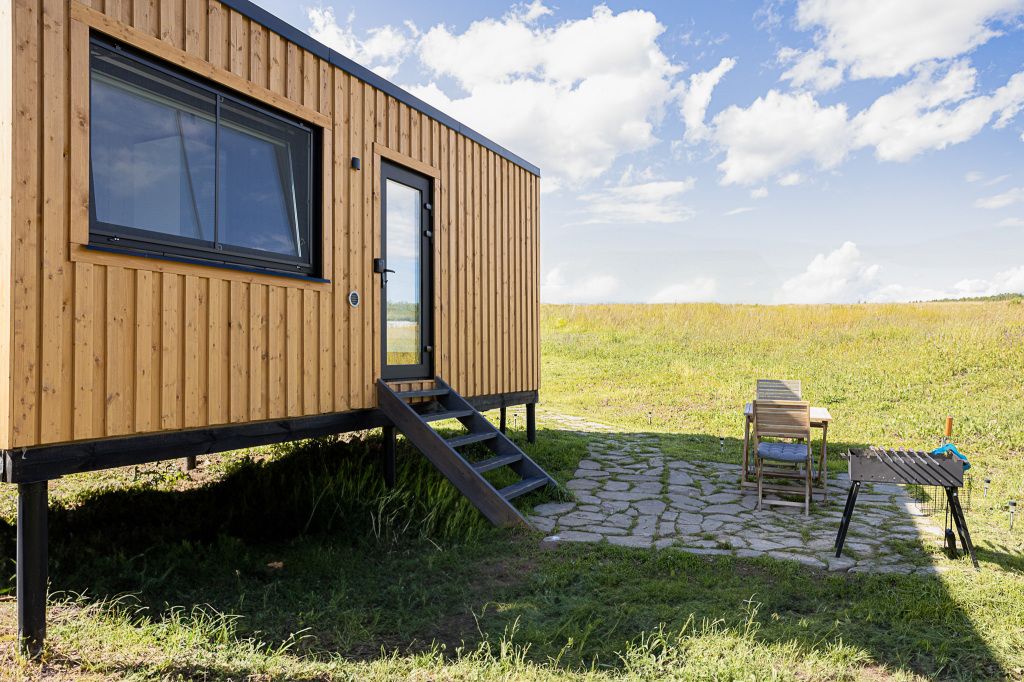 Домик расположен на берегу реки, которая берет начало прямо на территории глэмпинга! Из домика открывается панорамный шикарный вид на реку. В домике всегда тепло.