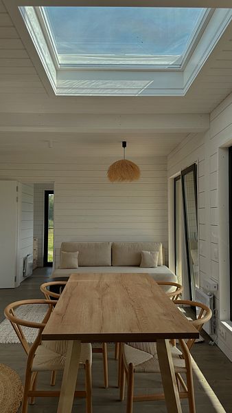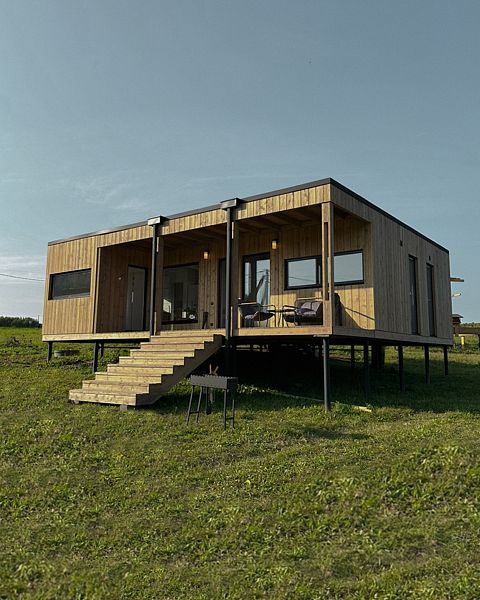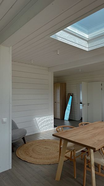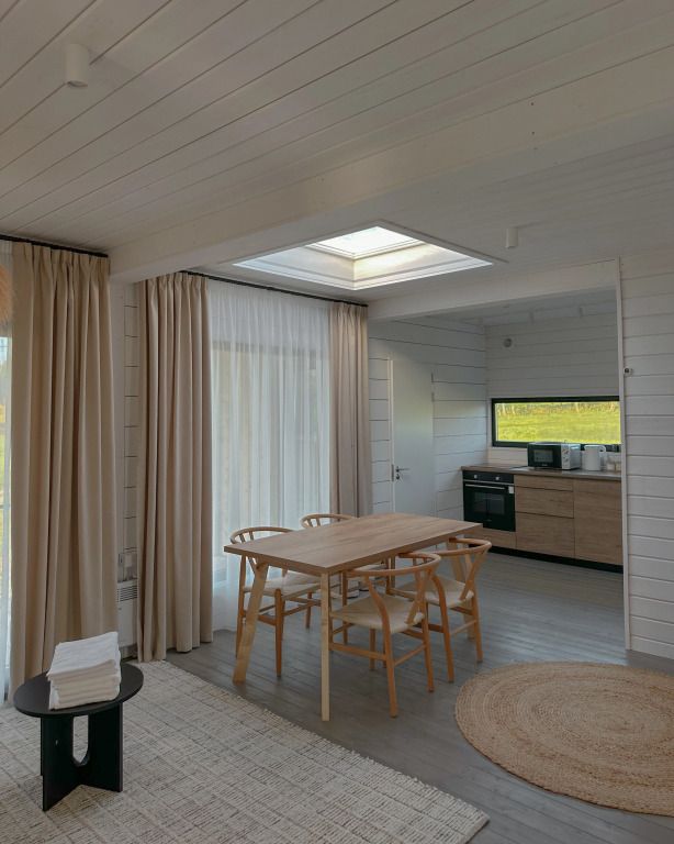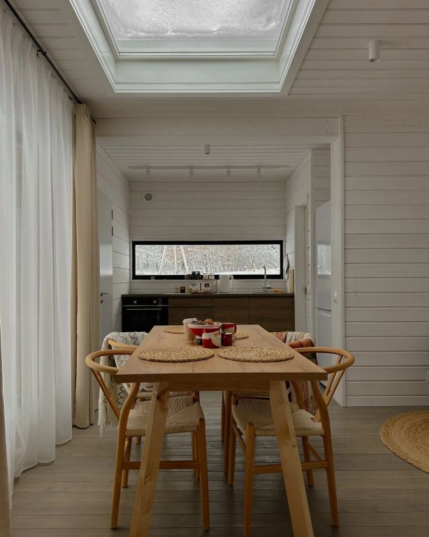 Дом с 2 спальнями, полноценной кухней, просторной гостиной с панорамным видом и окном в потолке, кабинетом для работы, с двумя террасами, мангальной зоной и большой территорией вокруг.